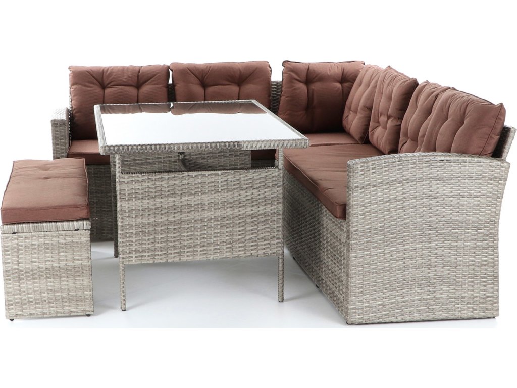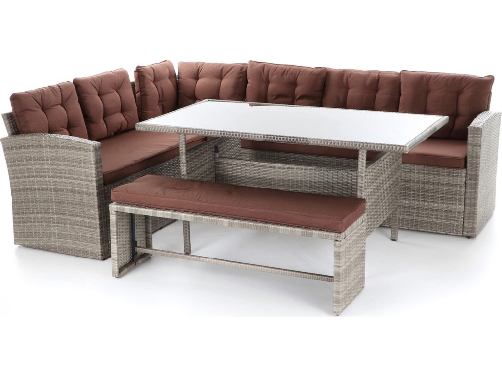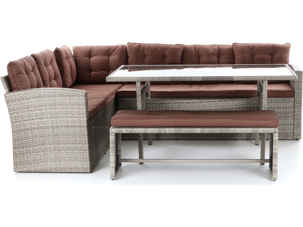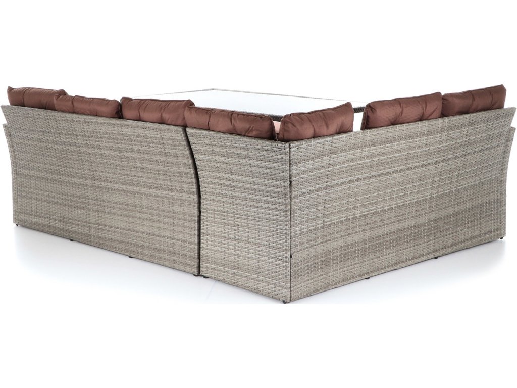 Luxusní rohová zahradní sestava s jídelním stolem určena k příjemnému posezení při relaxu s přáteli na terase či zimní zahradě.