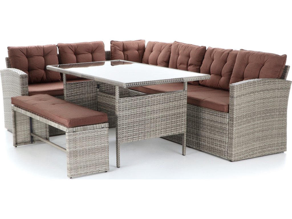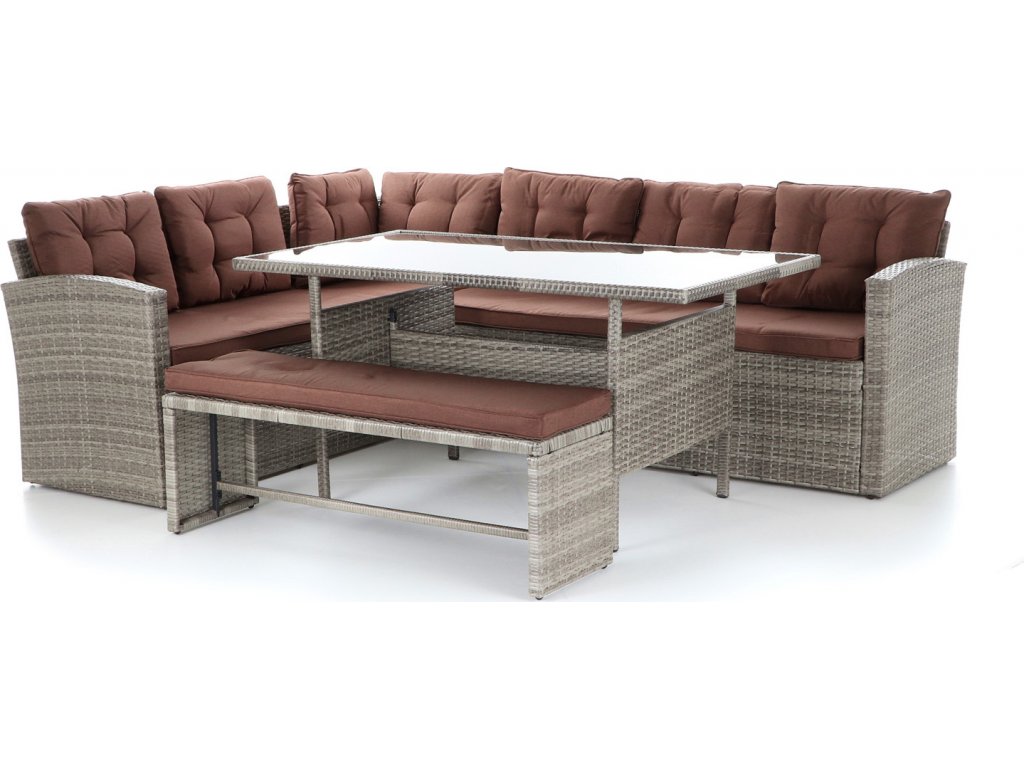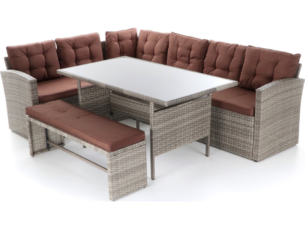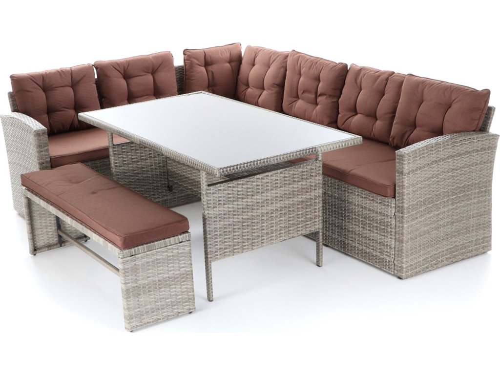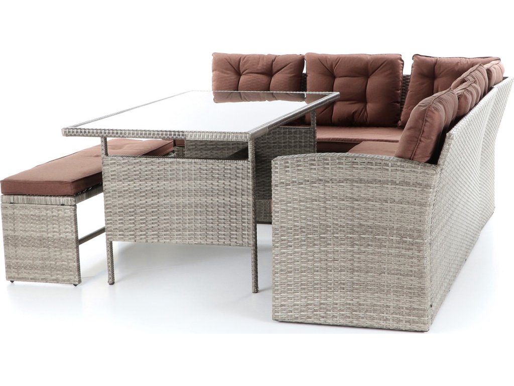 Luxusní rohová zahradní sestava s jídelním stolem určena k příjemnému posezení při relaxu s přáteli na terase či zimní zahradě.
