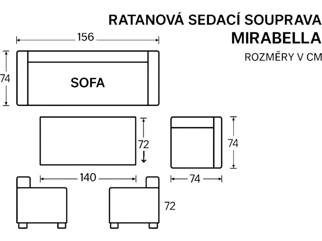 Zahradní ratanová sestava MIRABELLA z přírodního broušeného ratanu cubu .