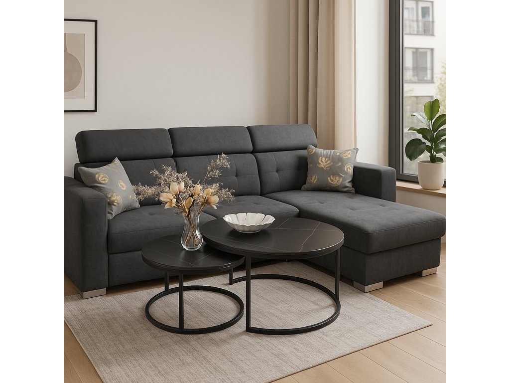 Sedací souprava Zara osloví každého, kdo preferuje moderní vzhled a zároveň pohodlí a praktičnost. Je potažena kvalitní potahovou látkou s kontrastním prošitím. Díky svým rozměrům je vhodná i do menších pokojů. Pro případ, že se návštěva zdrží přes noc, je sedací souprava vybavena rozkladem, díky kterému sedací soupravu jednoduše přeměníte v prostorné lůžko. Sedací souprava má praktický úložný prostor, který můžete využít např, na lůžkoviny. Pohodlí při sezení zajišťuje výplň sedáků, kterou tvoří kombinace pružin faliste s kvalitní PUR pěnou. Komfort a pohodlí při odpočinku zvyšuje polohovací opěrka hlavy. Sedací soupravu nabízíme na objednávku i v jiných potahových látkách, v levém i pravém provedení. K sedací soupravě je možno dokoupit křeslo a malý nebo velký taburet. Záda sedačky jsou čalouněná, je tedy vhodná i pro použití v prostoru.