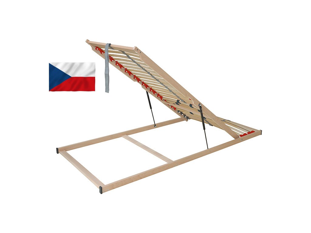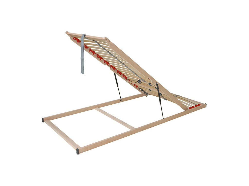 Lamelový rošt ze dřeva v šíři 80 cm. Rošt má 28 lamel v pružných kaučukových pouzdrech ( kaučukové výkyvné duo kapsy na kolíku ). U hlavy jsou 4 ks pevných lamel, další část se dá zvednout. Rovnoměrně rozkládá váhu těla na plochu matrace, obsahuje posuvné objímky pro individuální nastavení tuhosti v bederní oblasti ( 5 výztuh ). Obsahuje také středový popruh pro zlepšení stability roštu. Nosnost roštu je 120 kg. Rošt je výklopný pomocí plynových pístů. Vhodný k postelím s úložným prostorem, kde vkládáte věci od nohou.Doplňkové parametry