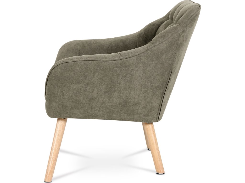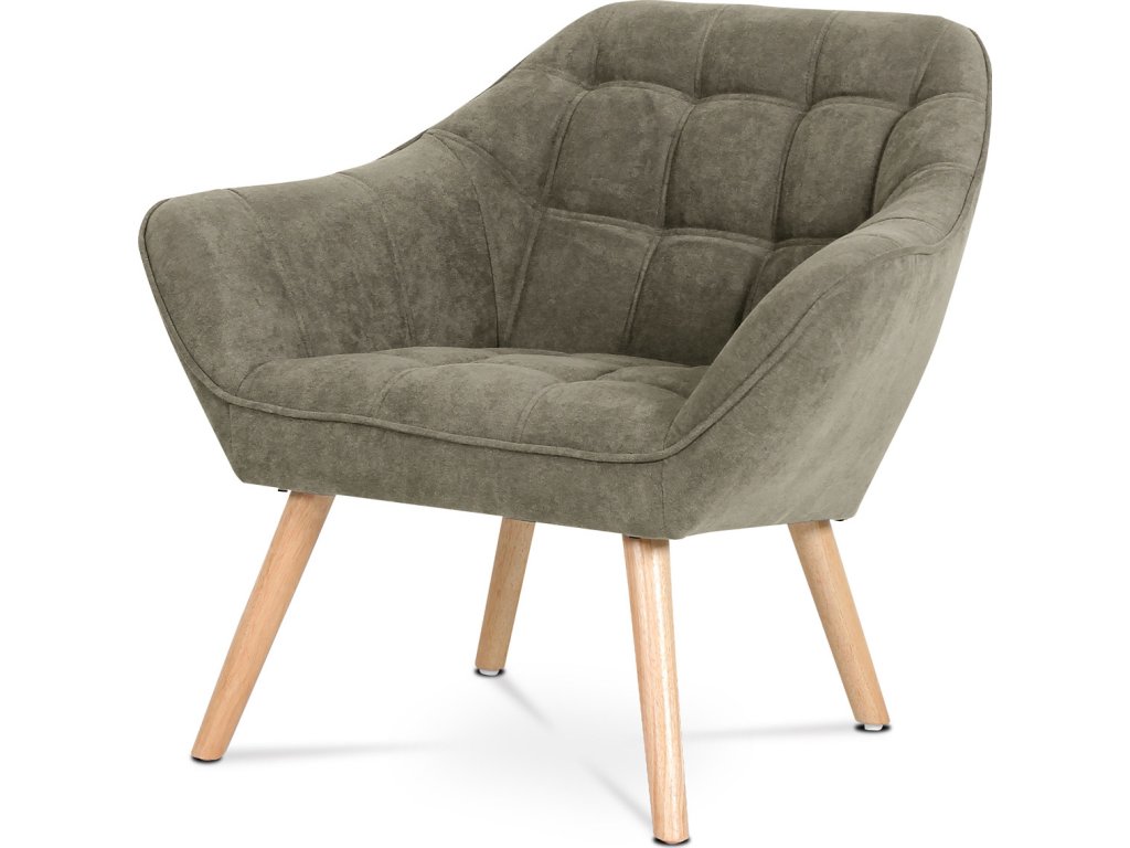Křeslo, potah lanýžová látka, dřevěné nohy, masiv kaučukovník