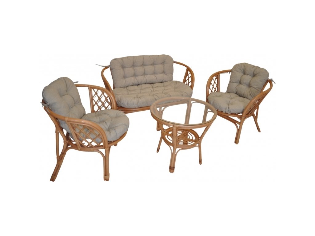 Ratanový nábytek - ratanová sedací souprava Bahama je vyrobena z přírodního ratanu s barvou konstrukce v tmavě medovém odstínu. Souprava obsahuje pohovku, 2 křesla, stolek se sklem a kompletní sadu polstrů.