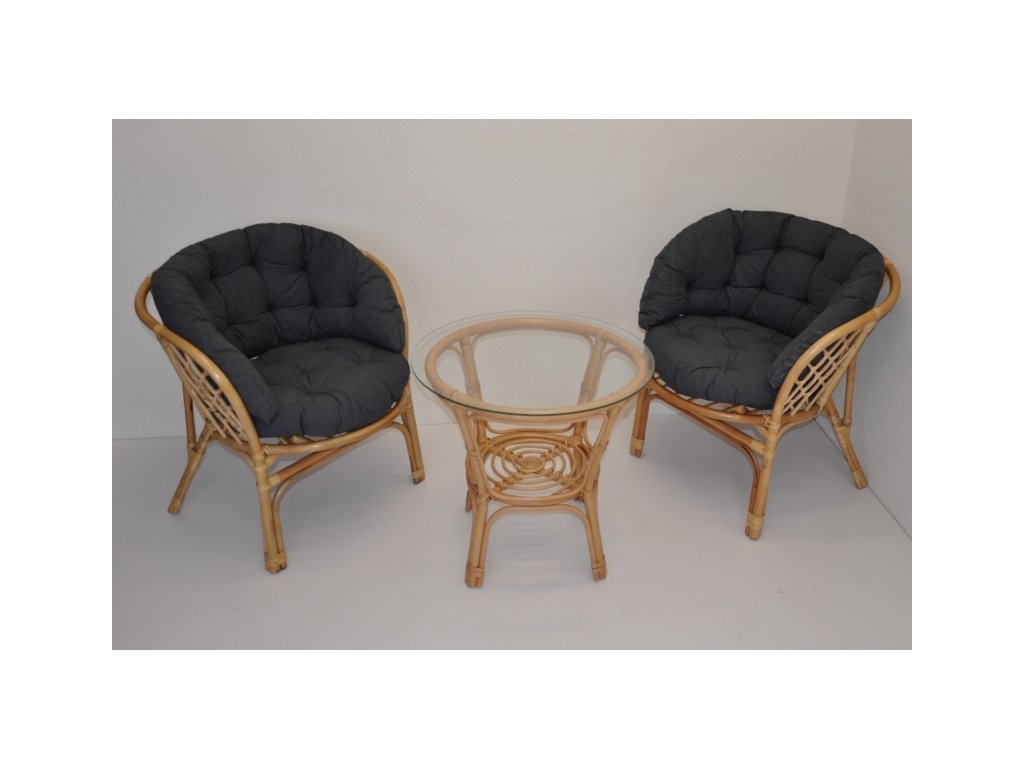Ratanová sedací souprava Jawa vychází konstrukčně z velice oblíbené sedací soupravy Bahama. Sedací soupravu prodáváme jako celek 2 křesílka, stolek se sklem a sadu polstrů.