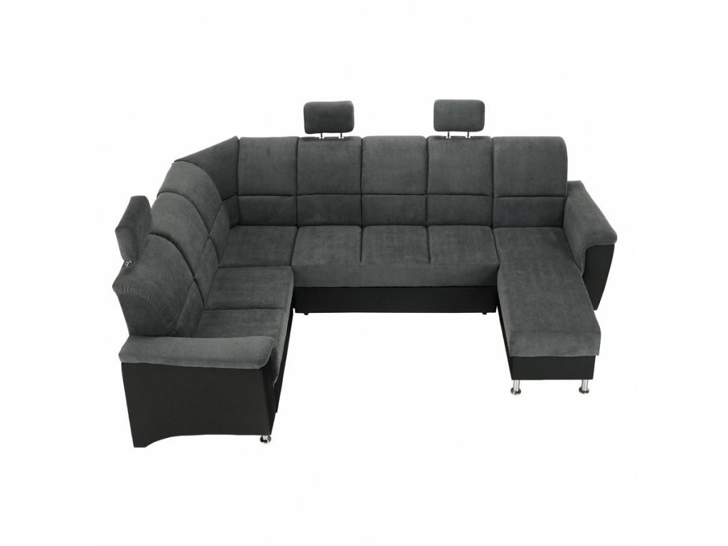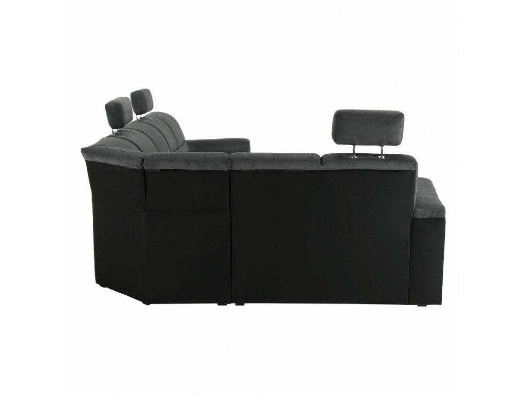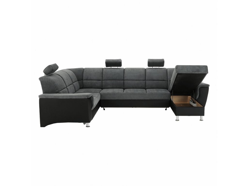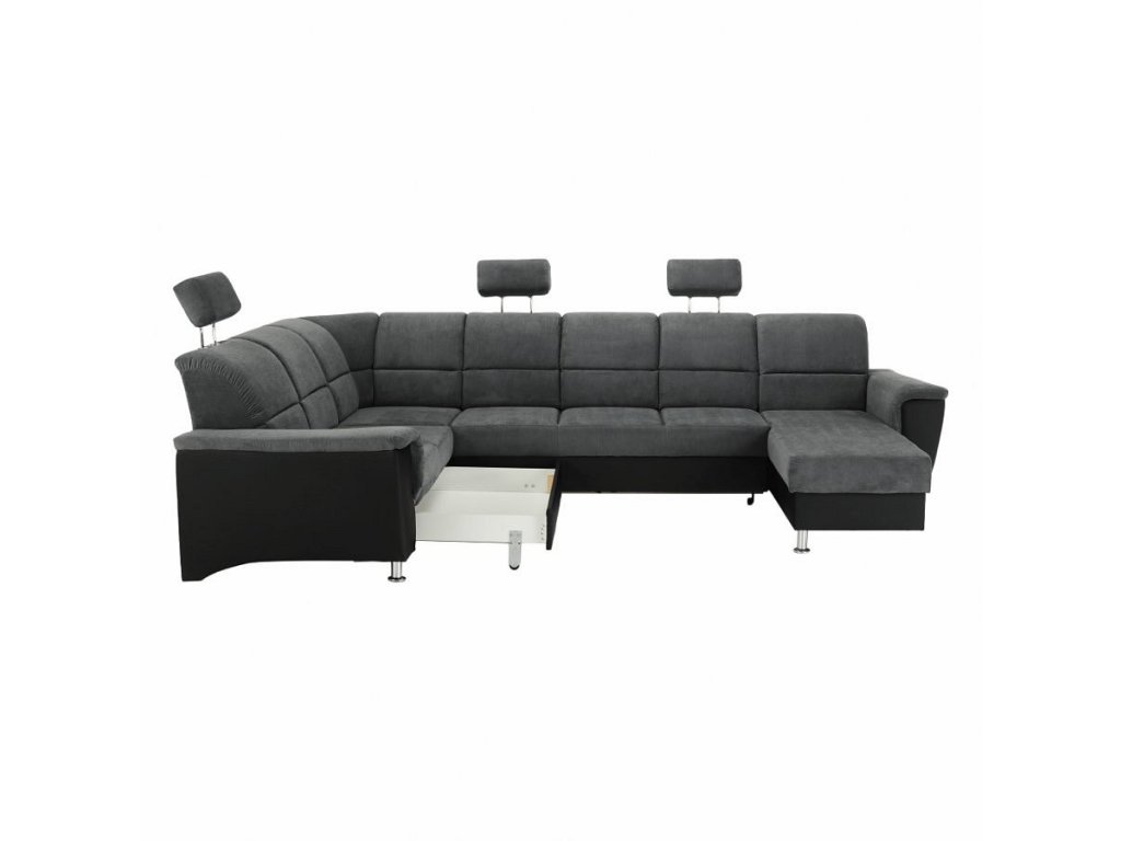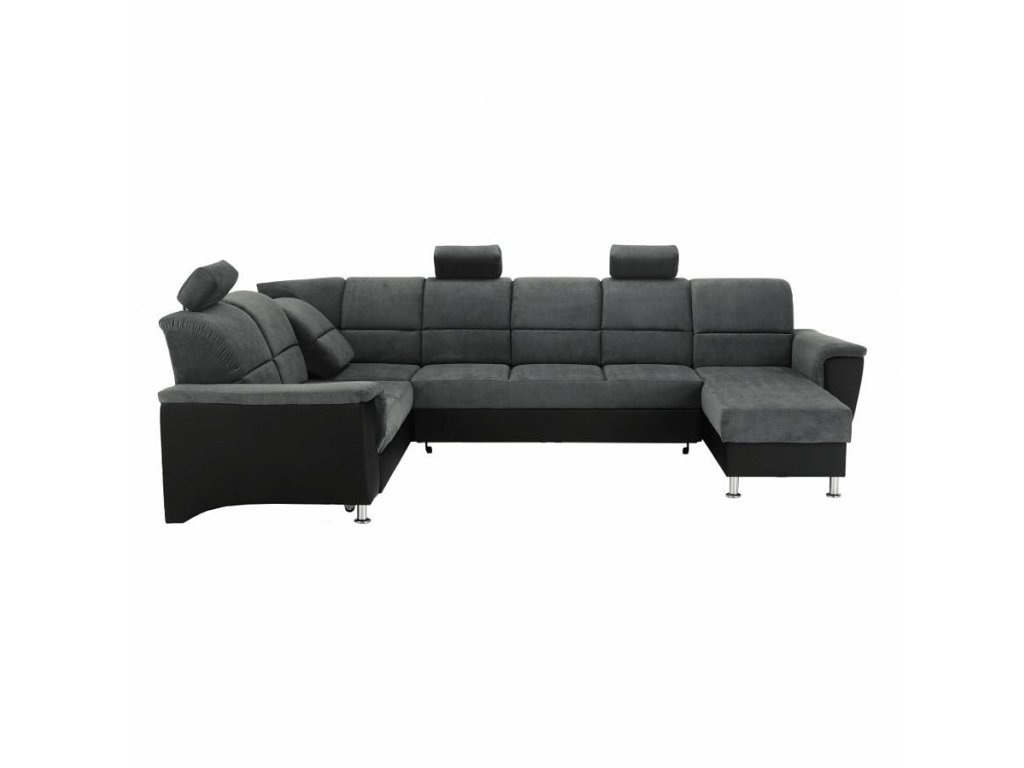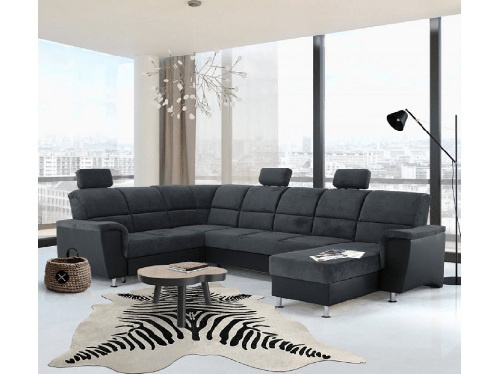 Sedací souprava, ekokůže černá / látka tmavě šedá, levá, SANTIAGO U