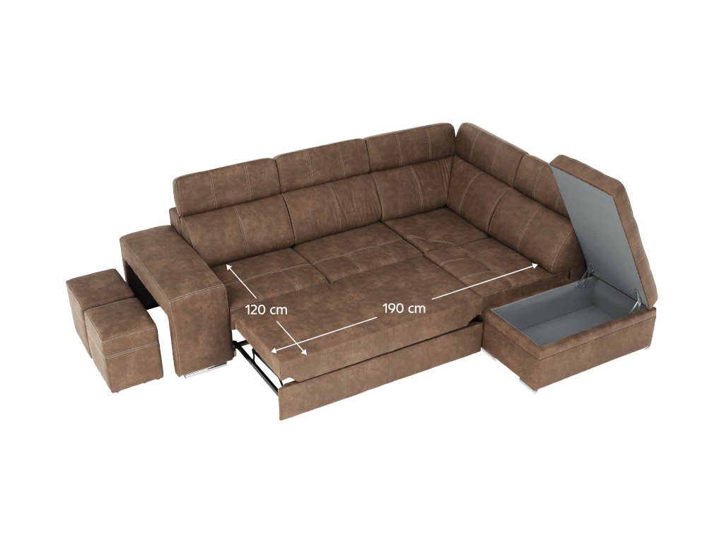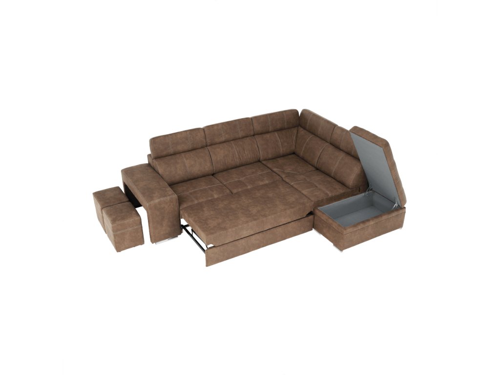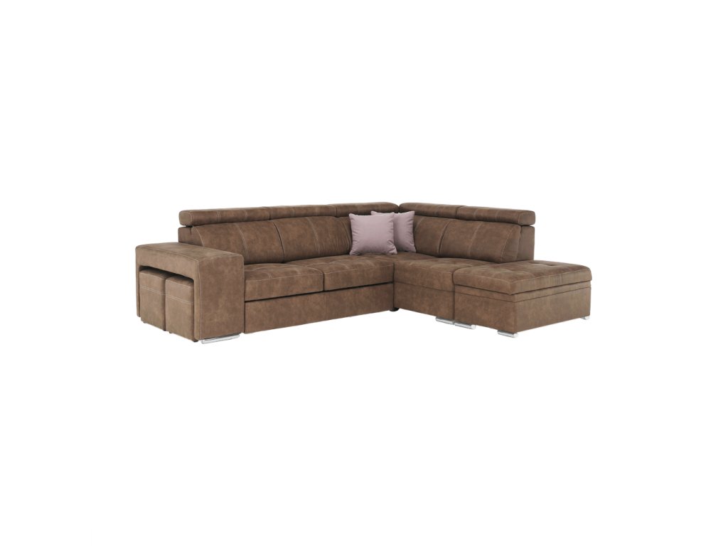 Celočalúnená rohová rozkladacia sedacia súprava s úložným priestorom a s polohovacím záhlavím. Materiál: Látka Preston/ látka Jasmine Oděruodolnost textilie Preston podle testu Martindale: 68 000 oděrek Oděruodolnost textilie Jasmine podle testu Martindale: 90 000 oděrek Farba: hnedá/svetlofialová Pravé prevedenie. Rozmery (ŠxHxV): 275x220x85/100 cm, plocha na spanie (ŠxD): 120x190 cm Výška spodního prostoru od podlahy: 5 cm Výška sedu: 43 cm Hĺbka sedu: 53 cm Dodávané s vankúšmi a s dvoma taburetmi Nosnost na osobu: 90 kg Dodávané v demonte. Máme pro vás hned čtyři barvy látky Preston a čtyři barvy látky Jasmine, kombinovat tedy můžete dle libosti. Cena sedačky na individuální objednávku je 38.290 Kč. Při individuální objednávce je třeba zaplatit 10% zálohu z dané částky. Po uhrazení zálohy bude Váš požadavek zadána do výroby. Dodací doba 8-10 týdnů.