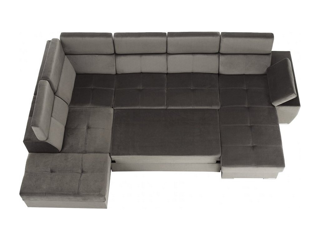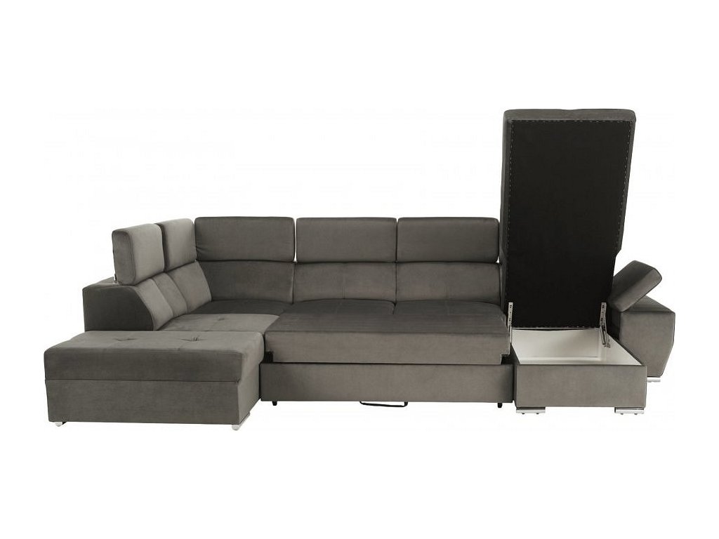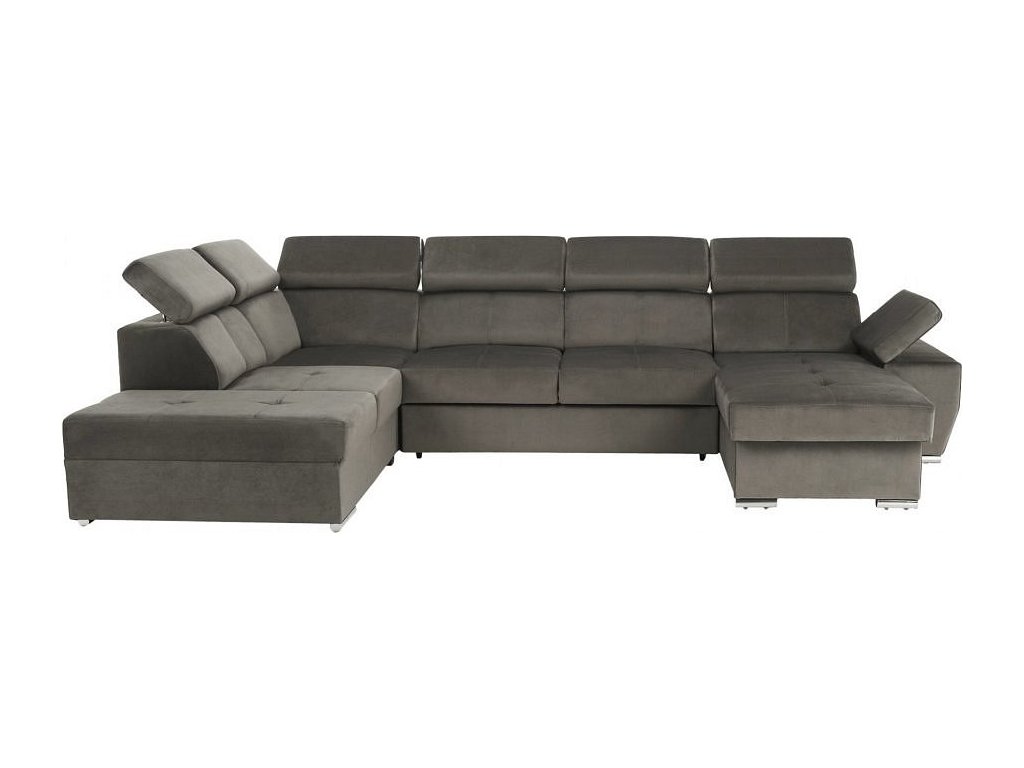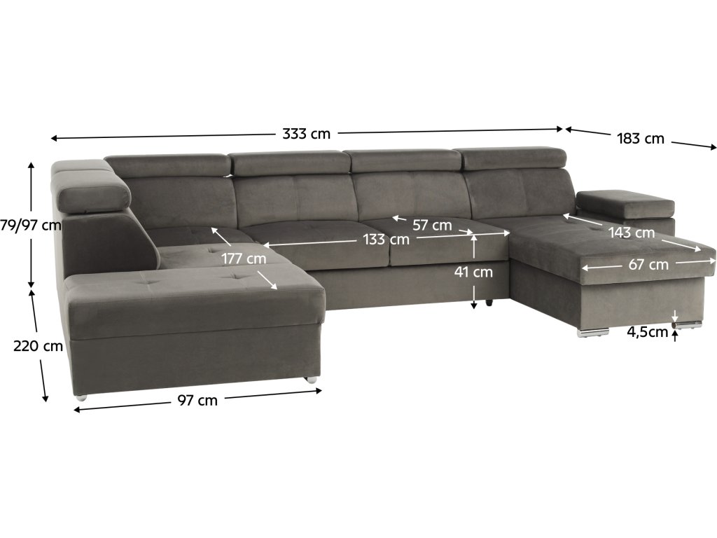 Materiál: látka KRONOS Oděruodolnost textilie podle testu Martindale: 60 000 oděrek Barva: šedohnědá taupe 15 Rozměry: (ŠxHxV): 329x220x79 / 97 cm Rozměry plochy na spaní (ŠxD): 256x129 cm Hloubka sedu: 57 cm Výška sedu: 41 cm Výška spodního prostoru od podlahy: 4,5 cm Šířka volného prostoru mezi otomany: 133 cm 6 kovových noh 6 polohovacích opěrek hlavy 5 stupňové polohování opěrek 1 polohovací opěrka ruky S úložným prostorem rozkládací celočalouněná Exkluzivní a moderní vzhled pravé provedení Výplň sezení: pružiny faliste a pur pěna T30KG / m3, tloušťka pěny 10 cm Výplň opěrky: elastické pásy a pur pěna T25 / m3, tloušťka pěny 7 cm Dekorativní polštáře nejsou součástí balení Dodávané v demontu Možnost objednání v 6 barevných provedeních látky Kronos. Dodací lhůta 8-10 týdnů.
