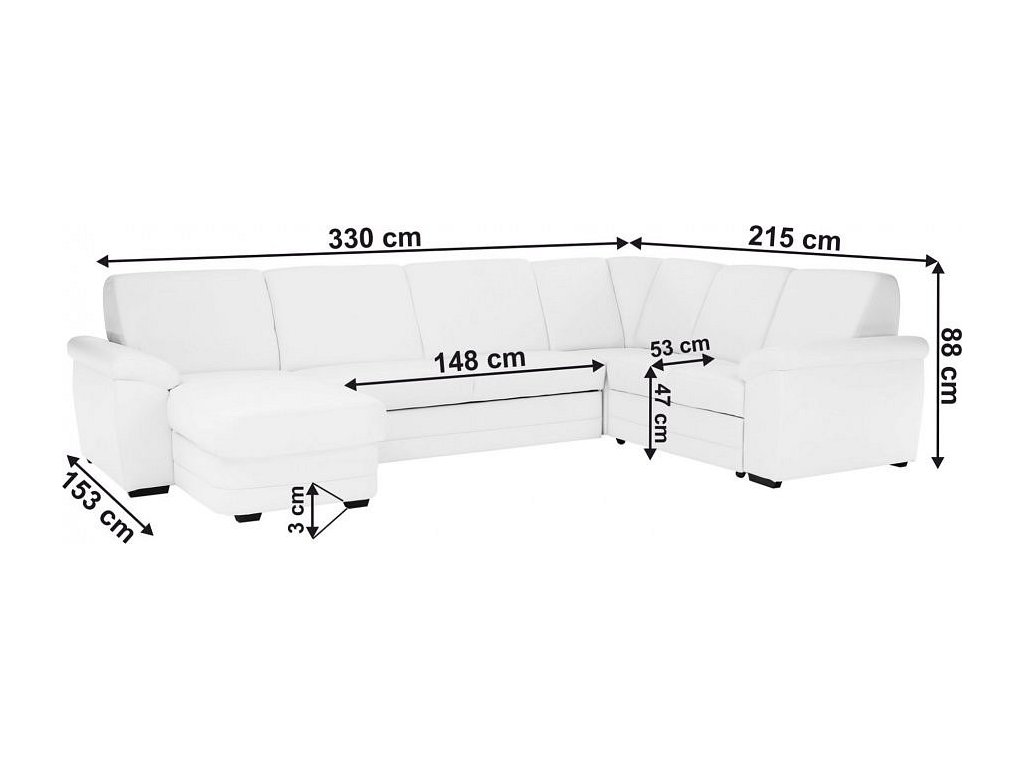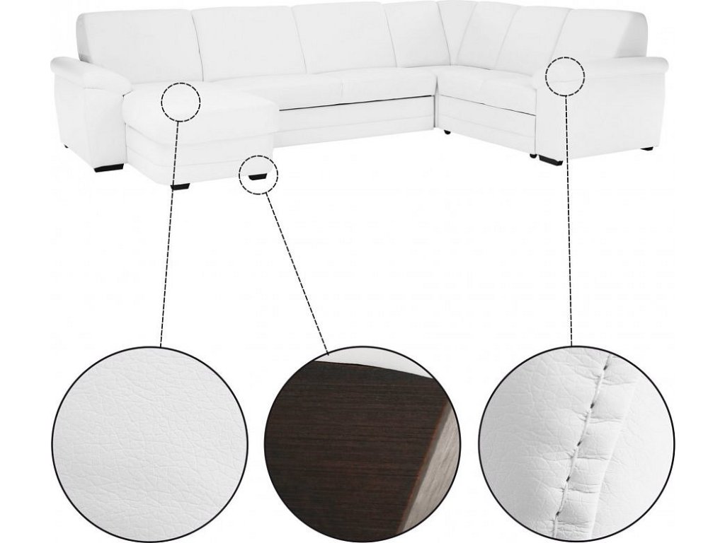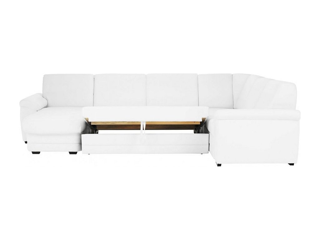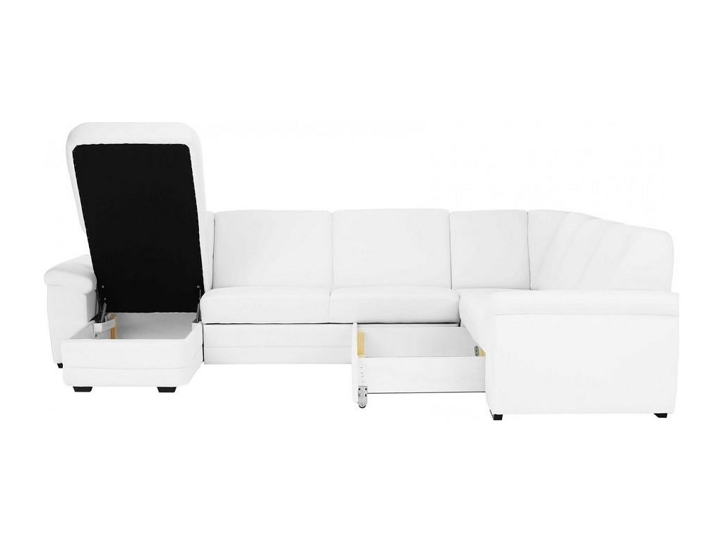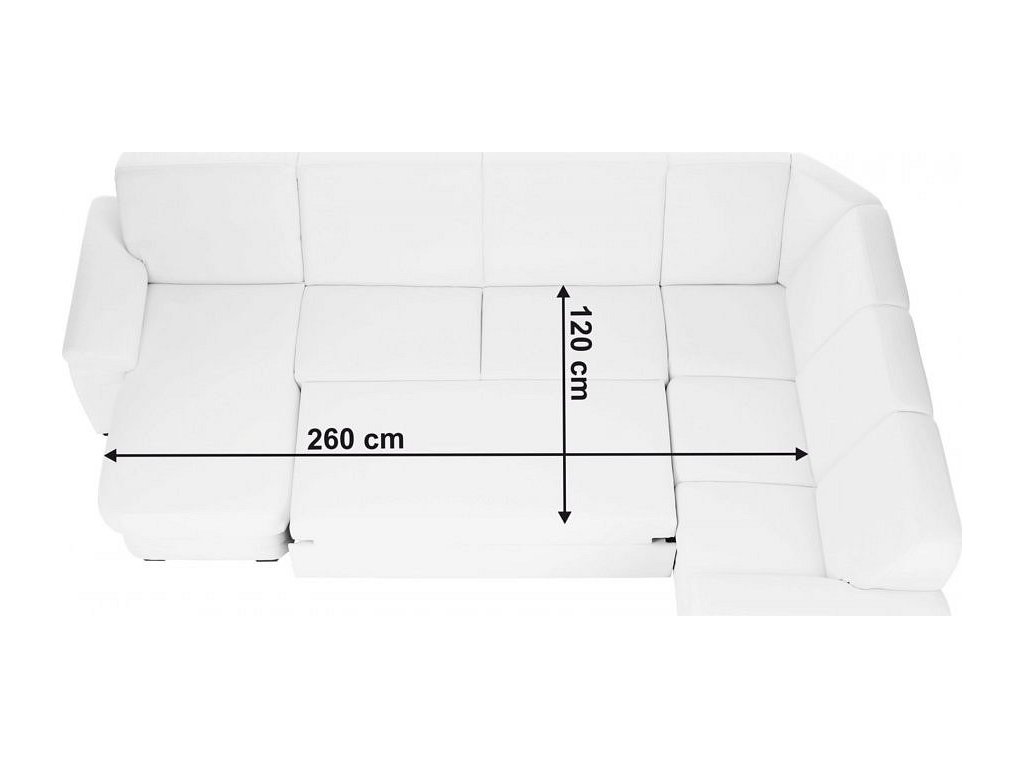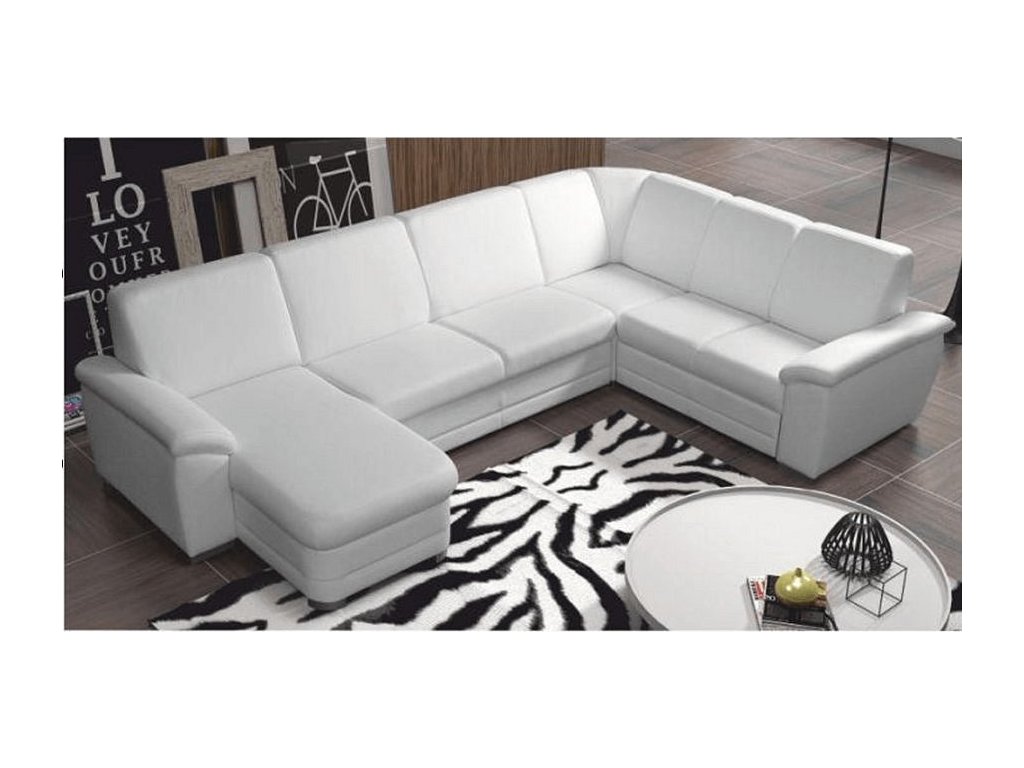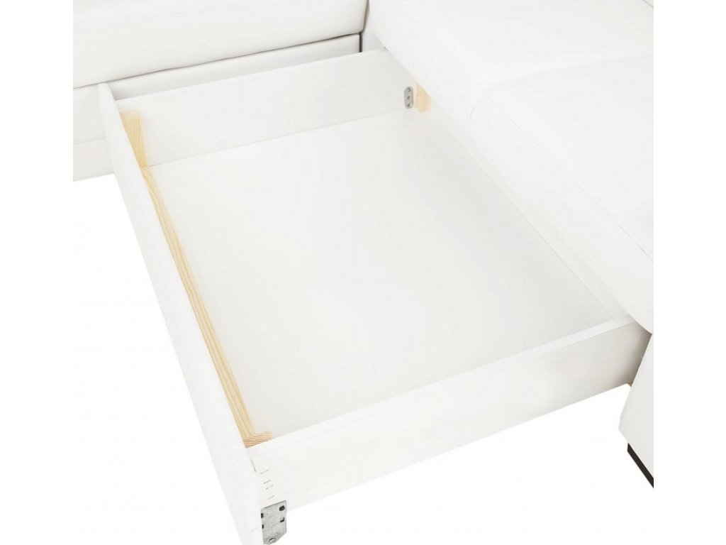 ;"Rohová celočalouněná rozkládací sedací souprava s úložným prostorem ve tvaru U, Levé provedení, Materiál: ekokůže bílá. Oděruodolnost textilie podle testu Martindale: 100 000 oděrek Rozměry (ŠxVxH): 330x88x215 / 153 cm, plocha na spaní (ŠxD): 120x260 cm. Výška spodního prostoru od podlahy: 3 cm Nosnost na osobu: 90 kg Nabízíme vám možnost zvolit si barevný odstín ze sedmi barev látky Cablo a ze sedmi barev ekokůže. Odstíny najdete v přiloženém vzorníku. Výběr barevného odstínu poznamenejte při objednávání přímo do poznámky. Při individuální objednávce je třeba zaplatit 10% zálohu z dané částky. Po uhrazení zálohy bude Váš požadavek zadána do výroby. Doba dodání 6-8 týdnů. Cena takto složené sedačky v jiné barvě závisí na počtu jednotlivých dílů, které ji tvoří. Doporučujeme prověřit si konečnou cenu na e-mail adrese nakup@tempo-kondela.sk.