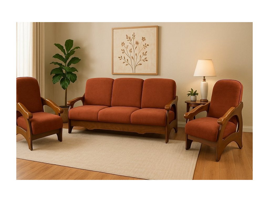 Sedací souprava Viki s rozkládacím trojsedem a dvěma křesly. Sedací souprava má úložný prostor a jednoduchým rozkladem vznikne lůžko 188x130 cm na občasné přespání pro dvě osoby. Výplň sedáku tvoří pružiny bonell v kombinaci s kvalitní PUR pěnou. Sedací souprava je očalouněná kvalitní látkou Velo, která je velmi příjemná na dotek a je odolná proti vsakování tekutin. Čalounění v kombinaci se dřevem působí velice stylově. Bočnice jsou vyrobené z bukového masivu, moření je možné v různých barevních odstínech. Sedací soupravu lze objednat i v jiných barevných provedeních (viz. vzorník látek níže). Odstíny nebo kresba dřeva nemusí přesně odpovídat vyobrazeným vzorkům.