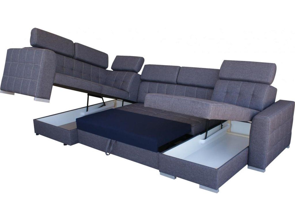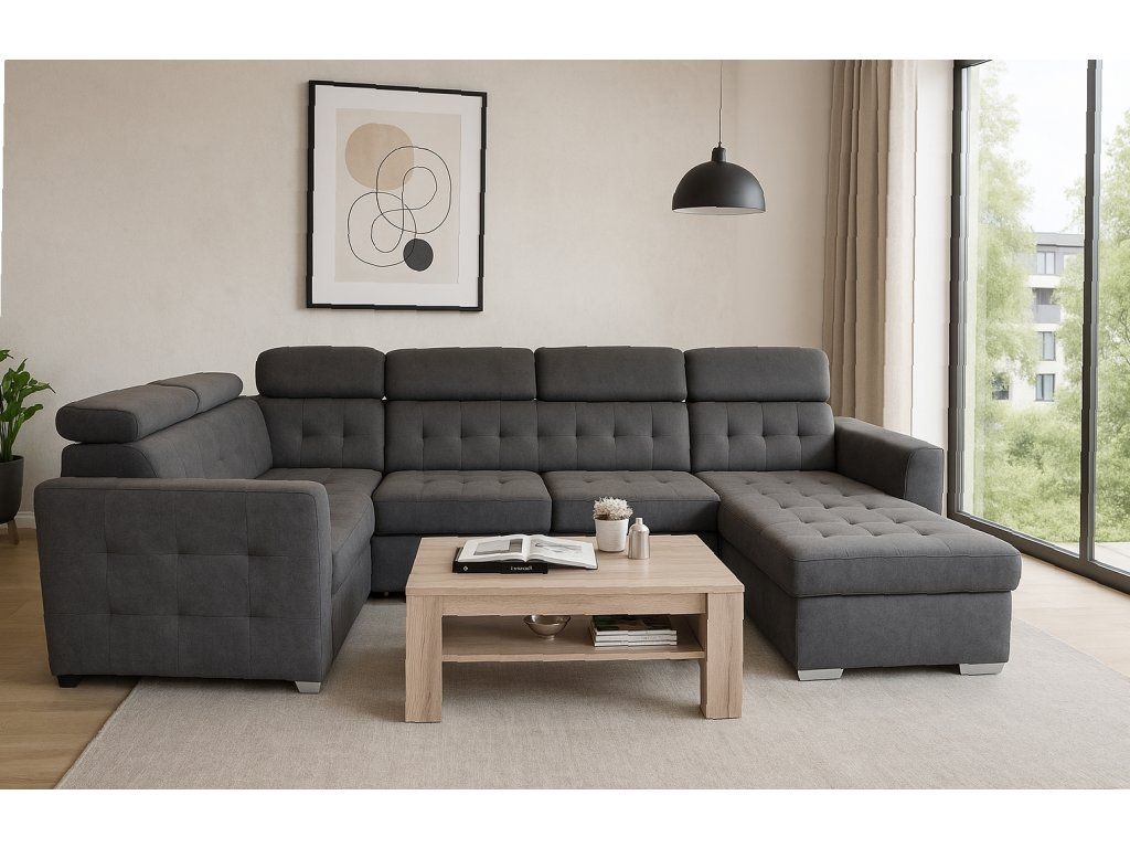 Sedací souprava Zara ve tvaru U osloví každého, kdo preferuje moderní vzhled a zároveň pohodlí a praktičnost. Je potažena kvalitní potahovou látkou s kontrastním prošitím. Sedací souprava je velmi pohodlná a dostatečně velká na posezení s přáteli, nebo rodinou. Pro případ, že se návštěva zdrží přes noc, je sedací souprava vybavena rozkladem, díky kterému sedací soupravu jednoduše přeměníte v prostorné lůžko. Sedací souprava má 2 praktické úložné prostory, které můžete využít např., na lůžkoviny. Pohodlí při sezení zajišťuje výplň sedáků, kterou tvoří kombinace pružin faliste s kvalitní PUR pěnou. Komfort a pohodlí při odpočinku zvyšuje polohovací opěrka hlavy. Sedací soupravu nabízíme na objednávku i v jiných potahových látkách, v levém i pravém provedení, nebo také v provedení do L. K sedací soupravě je možno dokoupit křeslo a malý nebo velký taburet.