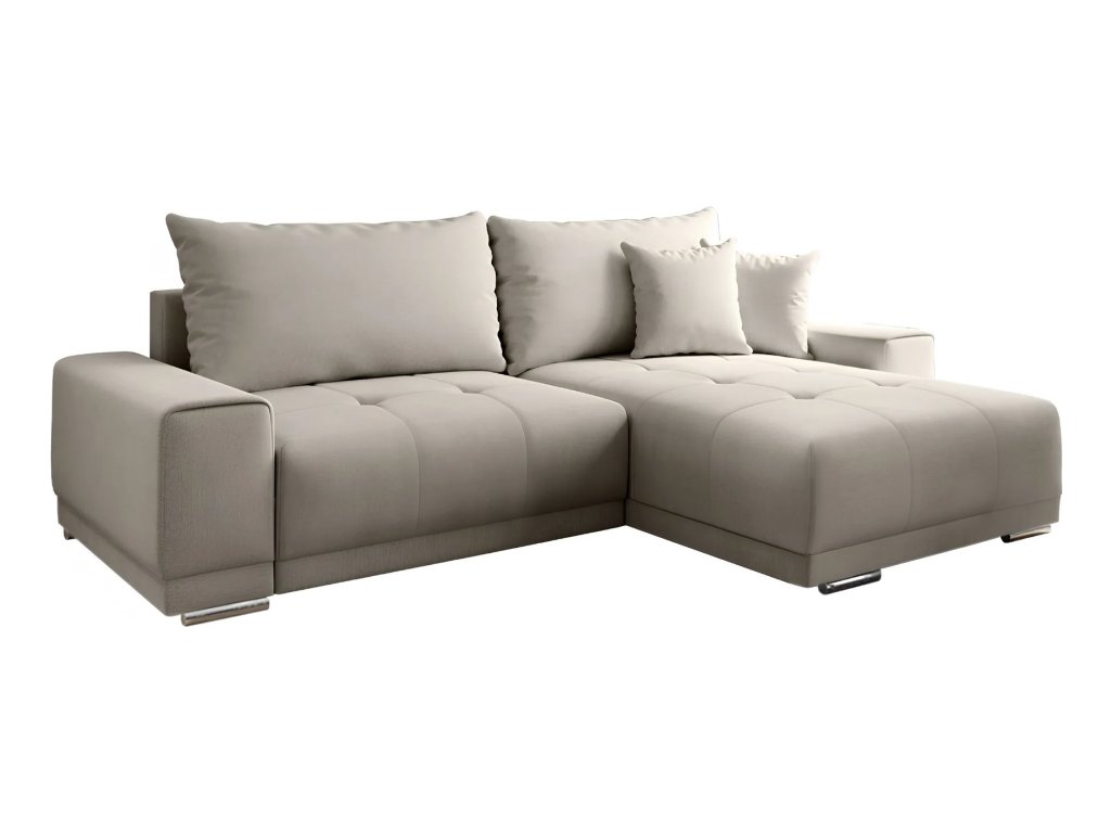 Materiál: látka SORO Oděruodolnost textilie podle testu Martindale: 90 000 oděrek Provedení: 23 Taupe šedobéžová Rozměry (ŠxHxV): 261x178x98 cm Plocha na spaní (ŠxD): 148x203 cm Výška sedu: 40 cm Hloubka sedu: 58/90 cm Výška spodního prostoru od podlahy: 5 cm celočalouněná Univerzální (L / P) rohová rozkládací S úložným prostorem dekorativní prošívaná S polštáři Pružina faliste / pur pěna Dodávané v demontu. Možnost objednat v 6 barevných provedeních látky Alfa v ceně 21.290 Kč. Při individuální objednávce je třeba zaplatit 10% zálohu z dané částky. Po uhrazení zálohy bude Váš požadavek zadána do výroby. Doba dodání 8-10 týdnů.