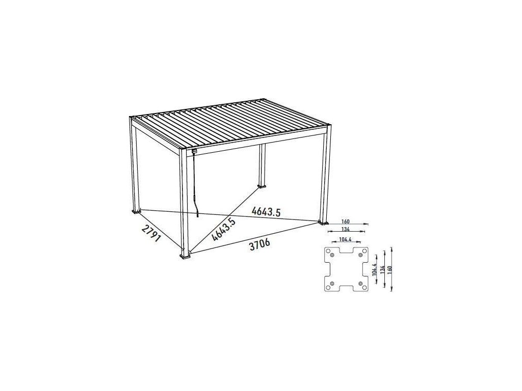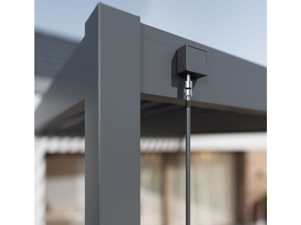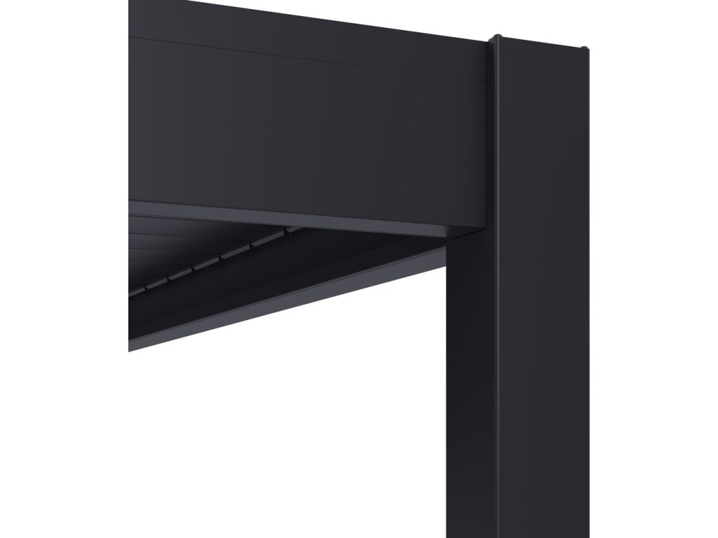 Velmi pevná a stabilní konstrukce v antracitové barvě RAL 7016, v matné povrchové úpravě se hodí do každého prostoru, není zapotřebí vrtat do stěny. Pergola je vyrobena z vysoce kvalitního hliníku, který je ošetřen práškovou barvou, což zaručuje odolnost vůči povětrnostním vlivům.