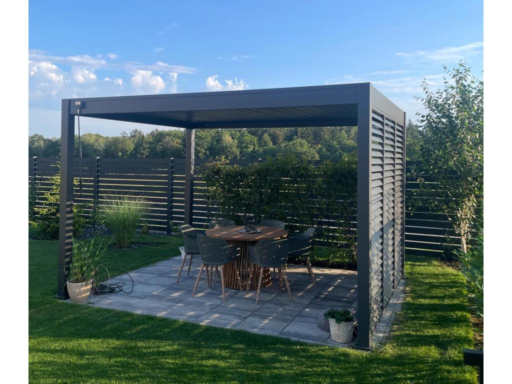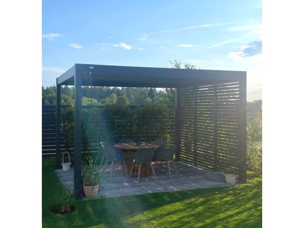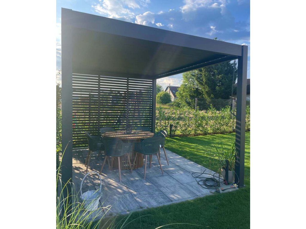 Prémiová zahradní hliníková volně stojící bioklimatická pergola o rozměrech 4x3 metry představuje ideální způsob zastřešení Vašeho venkovního posezení.