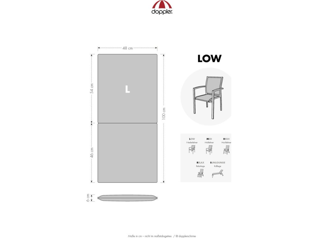 CITY 4419 nízký - polstr na židli a křeslo Polstr s nízkou opěrkou řady CITY. Elegantní polstr v módním odstínu, zdobený výšivkou Doppler na opěradle. Polstr je v provedení s obšitým lemem, prošitý 1x v sedáku, 1x v opěradle. Uchycení je pomocí posuvné spony. Díky sponě si můžete nastavit velikost dle rozměru a druhu židle, spona je pevná a nevytahuje se. Upevnění sedáku je pomocí dvou tkaniček v ohybu polstru. Síla polstru je optimální pro všechny druhy židlí. Provedení je vhodné i do náročných podmínek kaváren, zahrádek a restaurací. Potah je nesnímatelný. Vyrobeno v České republice. Informace o produktu rozměry polstru: 100 x 48 x 6 cm (výška x šířka x tloušťka) rozměry sedáku: cca 46 x 48 cm rozměry opěradla: cca 54 x 48 cm Materiál potah: 100procent evropský polyester, s velmi dobrou stálobarevností a odolností vůči oděru. výplň: molitan obalený do polyesterového rouna Celkové rozměry podušek jsou uváděny s tolerancí plus /- 2cm, konečný rozměr hotového výrobku vždy ovlivňuje jeho konkrétní zpracování (např. obšití, prošití apod).