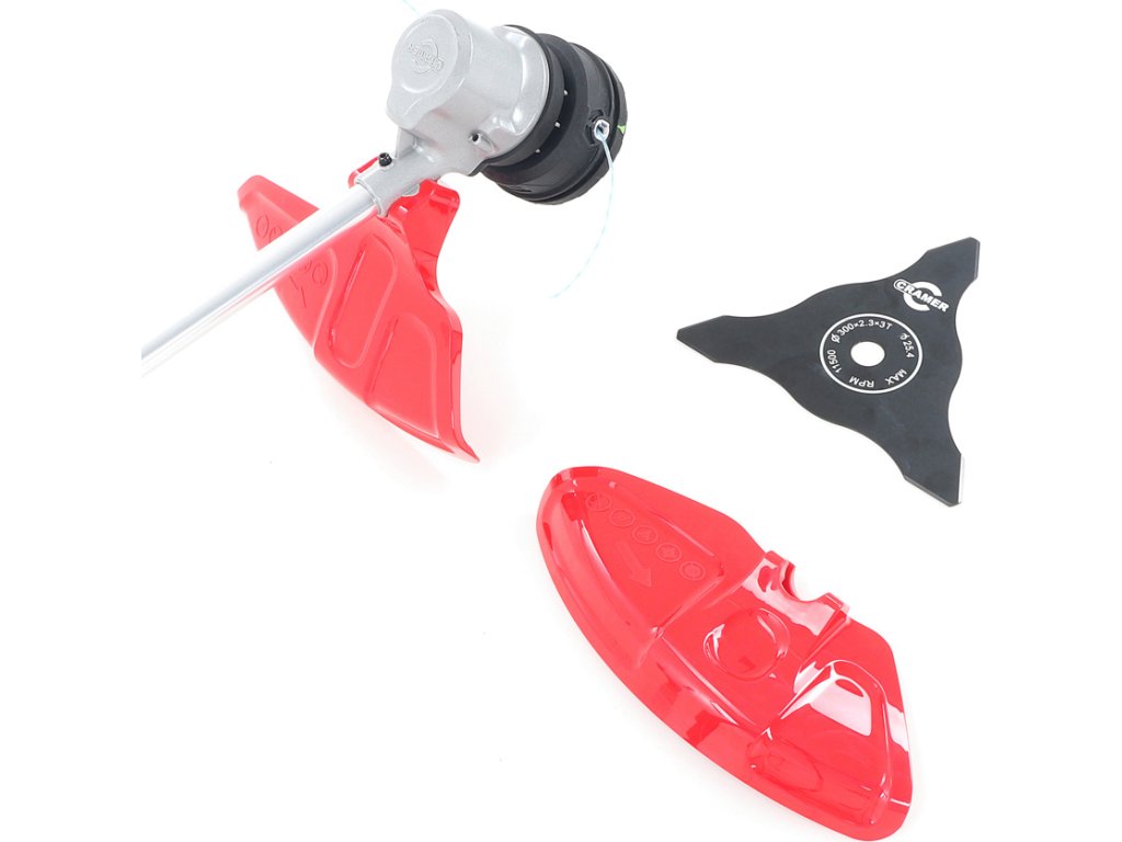 - Prémiová strunová žací hlava s nárazovým odvinutím má šířku sečení 45cm, pro rychlé vyžínání trávy, zatímco ocelový nůž křovinořezu o průměru 300mm si poradí i s odolnější zarostlou plochou
