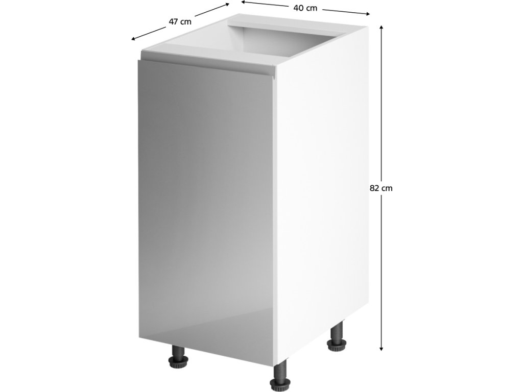 Spodní skříňka, Aurora D40 Provedení: DTD laminové / MDF Barva: bílá / šedá extra vysoký lesk Rozměry (ŠxHxV): 40x47x82 cm Tloušťka materiálu: 15 mm Pracovní deska není součástí skříněk. Je možné si doobjednat pracovní desku v provedení dub lefkas tmavý tloušťky 38 mm za 1.350 Kč / bm. Možnost dokoupit dřez LAY ON. Ke každé dolní skříňce, kromě D25PZ, je třeba doobjednat 2ks úchytů na sokel- cena 20 Kč. Spodní skříňky jsou dodávány včetně dolní lišty, avšak přesný rozměr, který potřebujete, je třeba uvést do poznámky v objednávce. Pokud rozměr neuvedete, může se stát, že vám sokl nebude dodán.