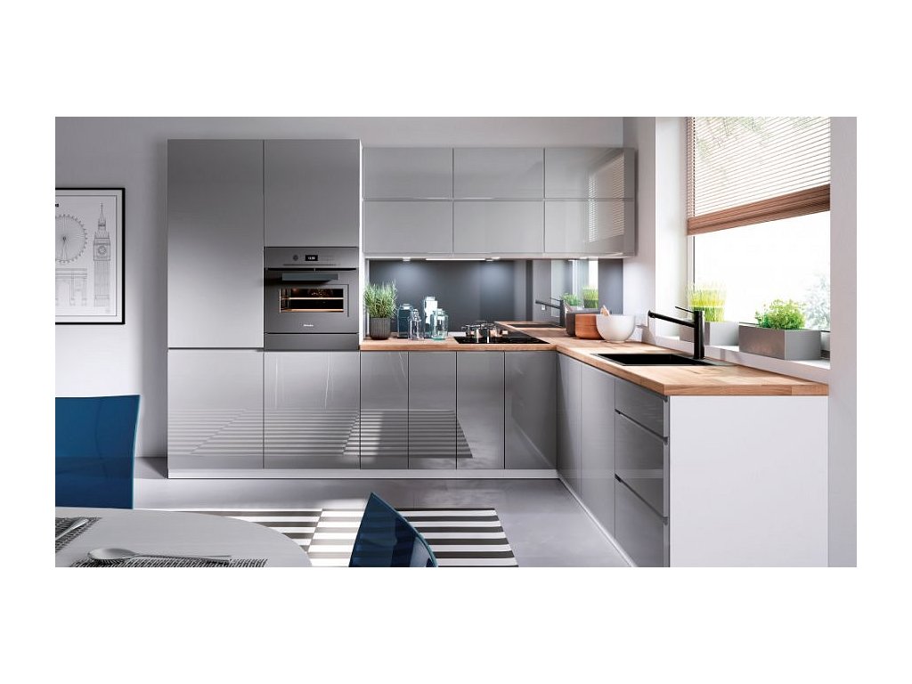 Spodní skříňka, bílá / šedá extra vysoký lesk, levá, AURORA D40S1