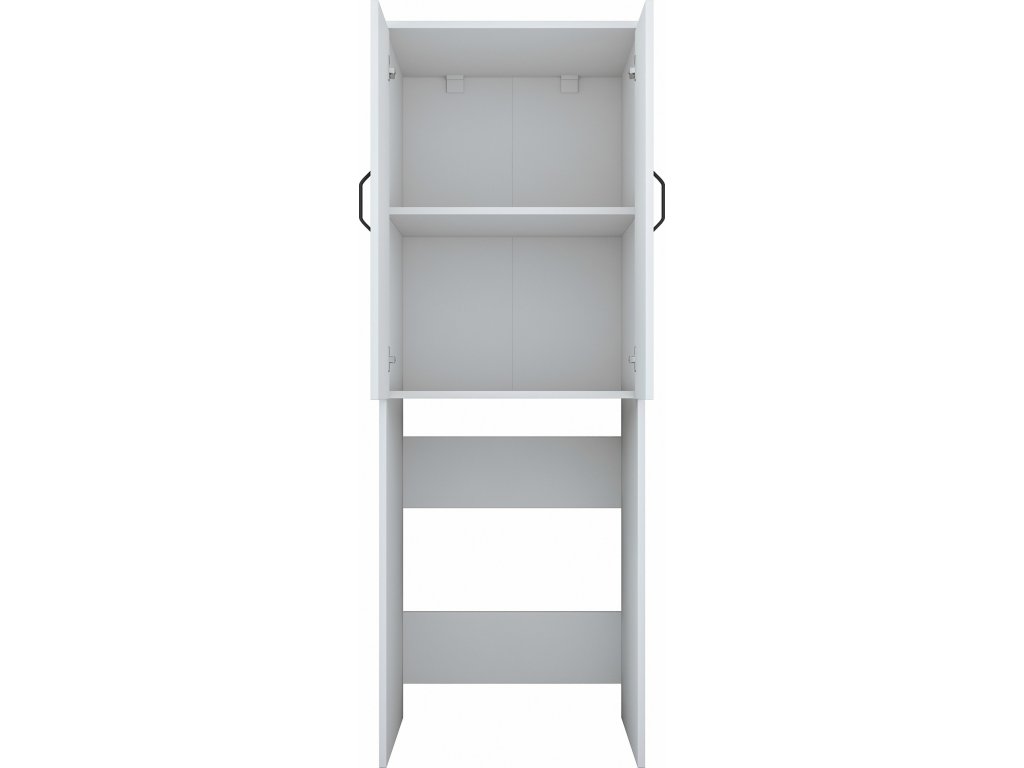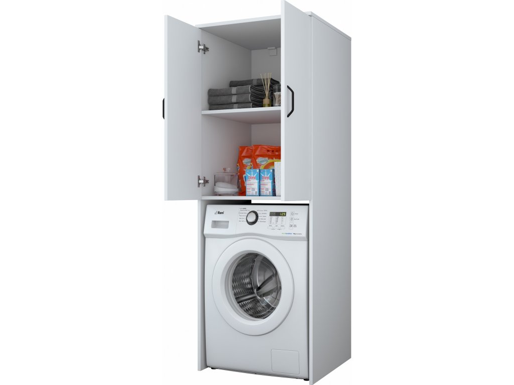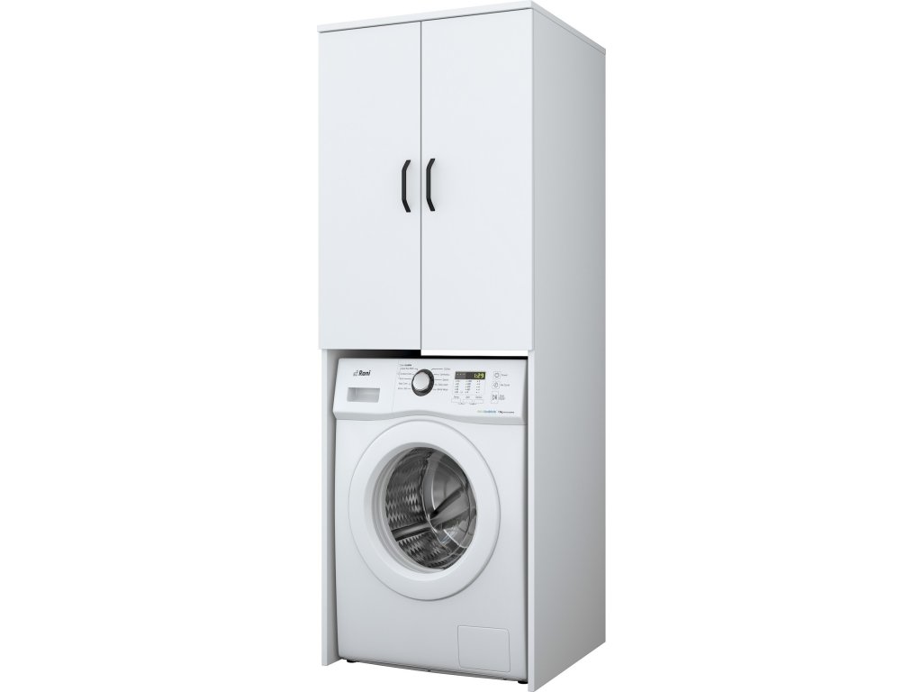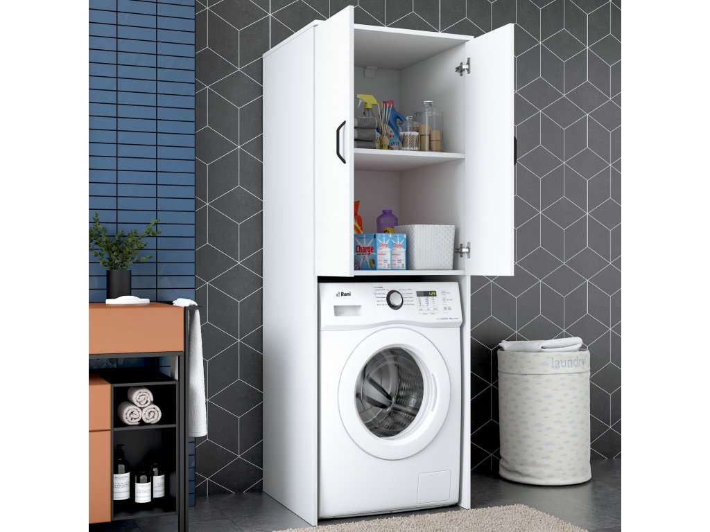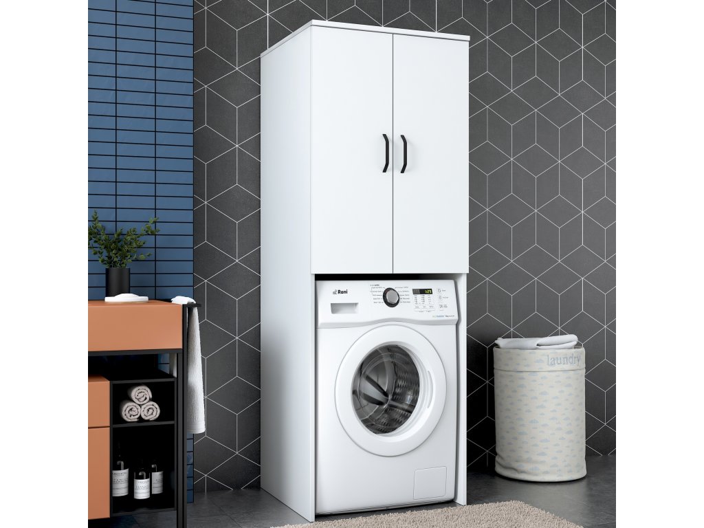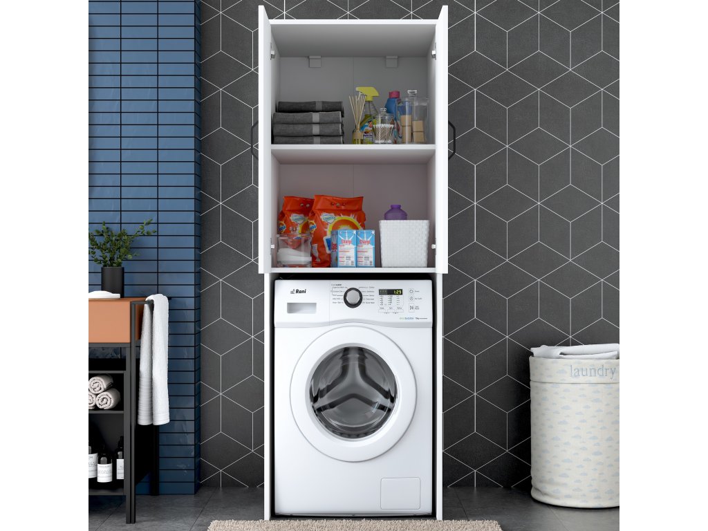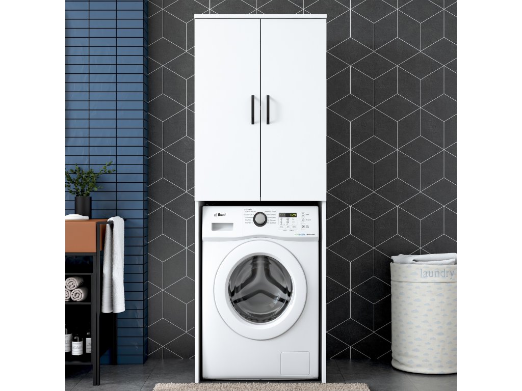 Skříňka je navržena tak, aby efektivně využila prostor nad pračkou. Poskytuje praktický úložný prostor za dvěma plnými dvířky, ideální pro ukládání čisticích prostředků, ručníků nebo dalších koupelnových potřeb.