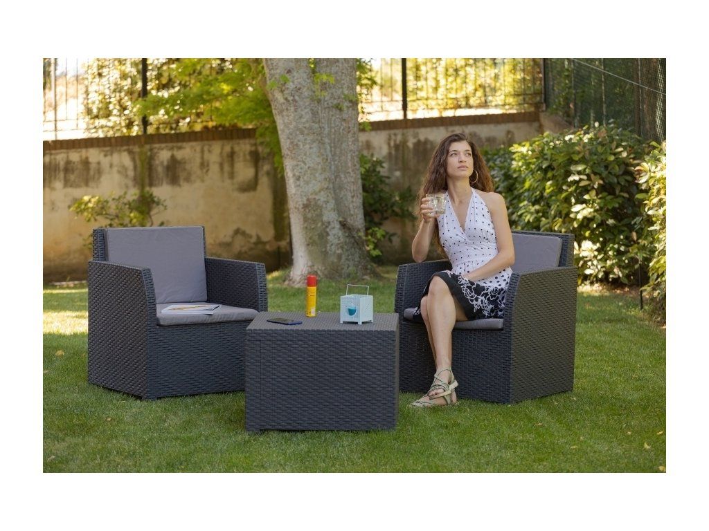 Představujeme vám zahradní plastový set DIANA 2 SEATERS v elegantním grafitovém provedení - to je ten správný výběr pro Vaše venkovní relaxaci!