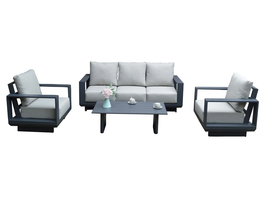 Luxusní hliníková souprava v grafitovém provedení. Moderní souprava, která skvěle zapadne do každého exteriéru či interiéru.