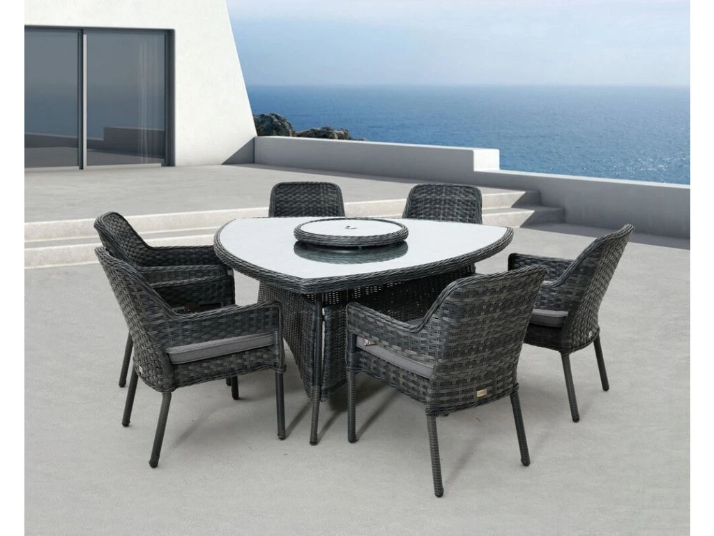 Luxusní hliníková souprava v grafitovém provedení, doplněna o ratanový výplet. Moderní souprava, která skvěle zapadne do každého exteriéru či interiéru.