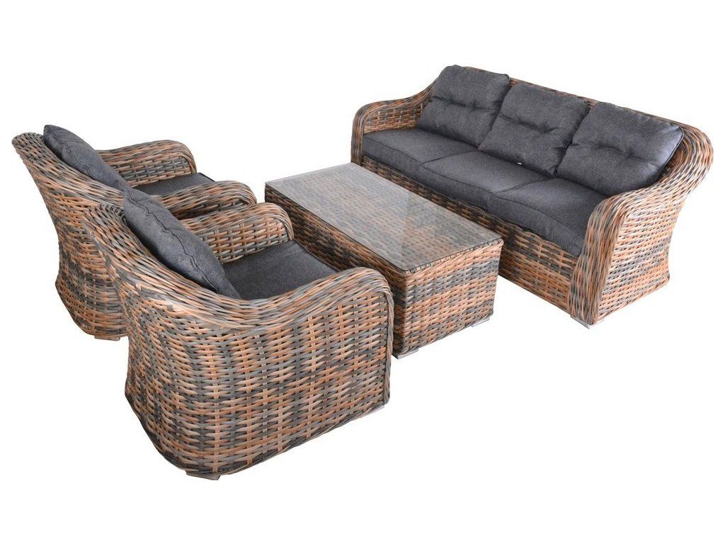 Luxusní souprava z kvalitního umělého ratanu, který odolává UV záření a teplotě od +50°C do -10°C.