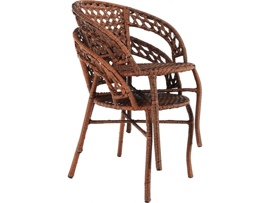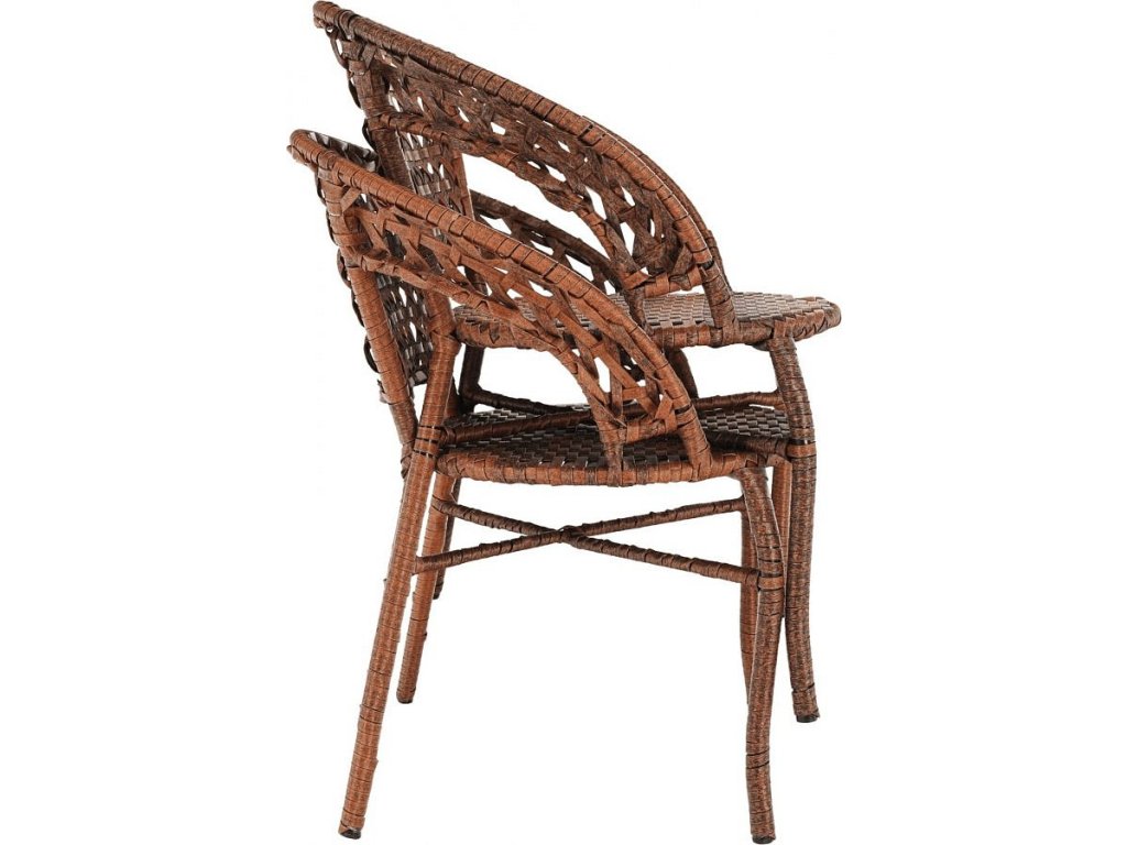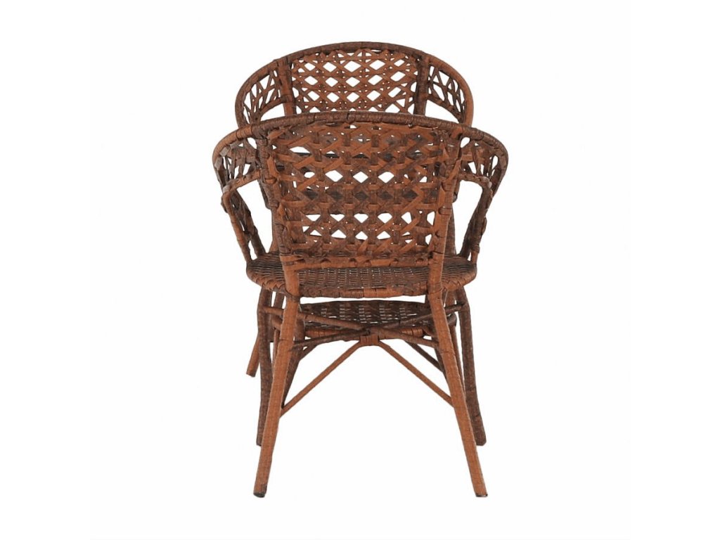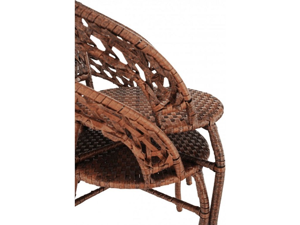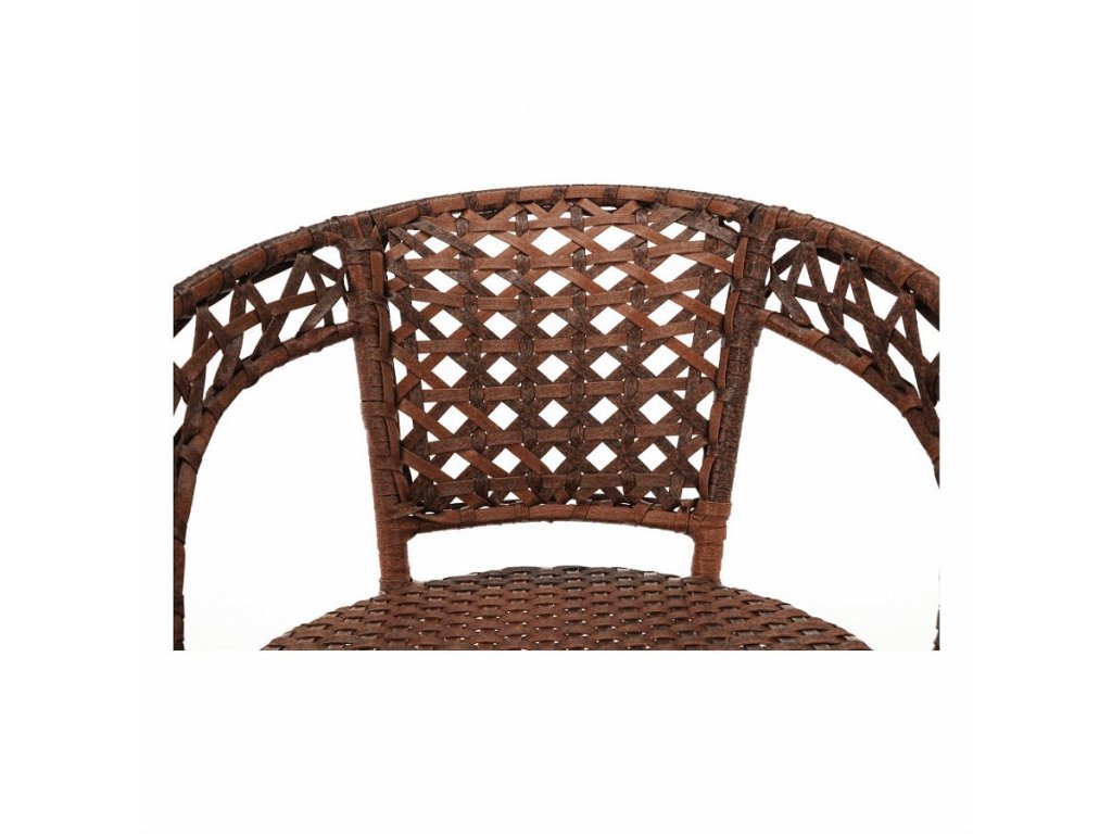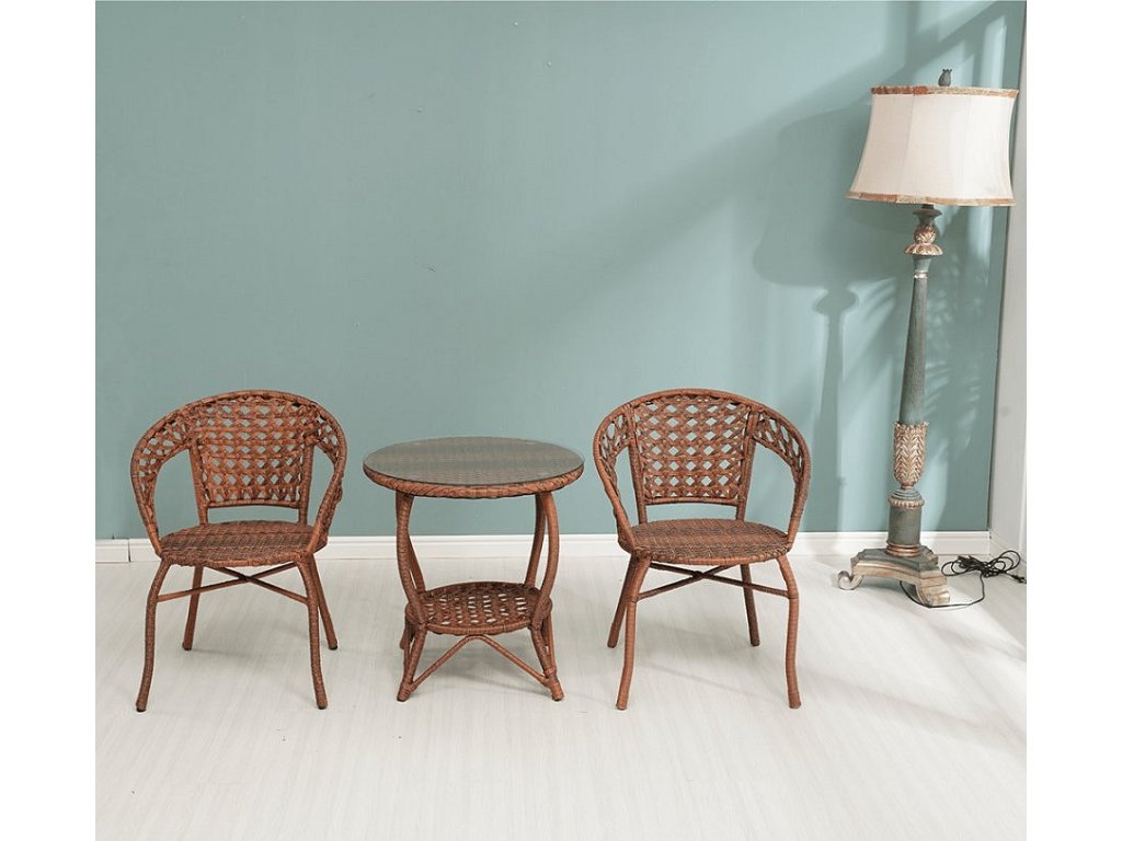 Materiál: umělý ratan / ocel / tvrzené sklo Barva: hnědá Stůl (priemerxV): 60x60 cm Židle (ŠxHxV): 58x59x74 cm Hloubka sedu židle: 45,5 cm Výška sedu židle: 41 cm Nosnost židle: 90 kg 3-dílná souprava jeden stůl dvě židle Židle / křesla jsou stohovatelné Dodávané v monte