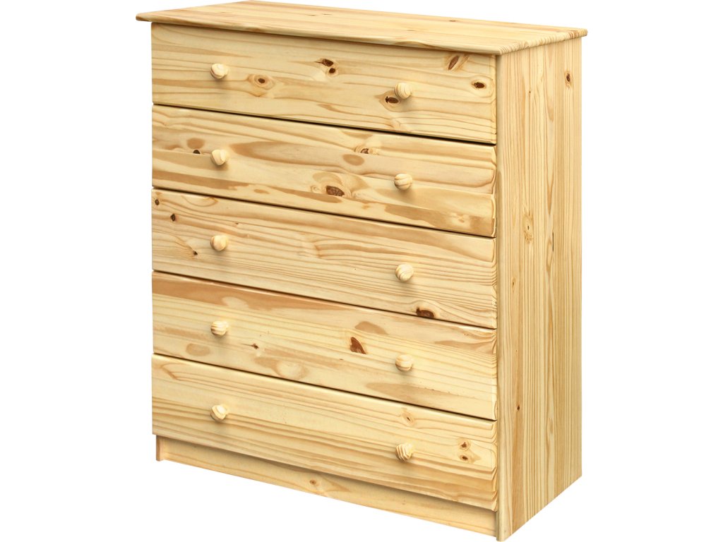 materiál masiv borovice, lakované provedení 5 širokých zásuvek s kovovými pojezdy, hloubka zásuvky 36,5 cm