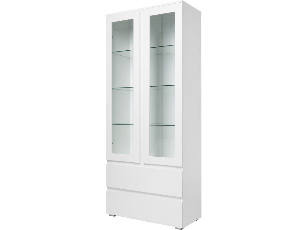 barevné provedení bílá 2 prosklené dveře, 3 skleněné police 2 zásuvky, pojezdy s kuličkovými ložisky záda jsou oboustranná, možno zvolit barevné provedení bílá nebo zlatý dub