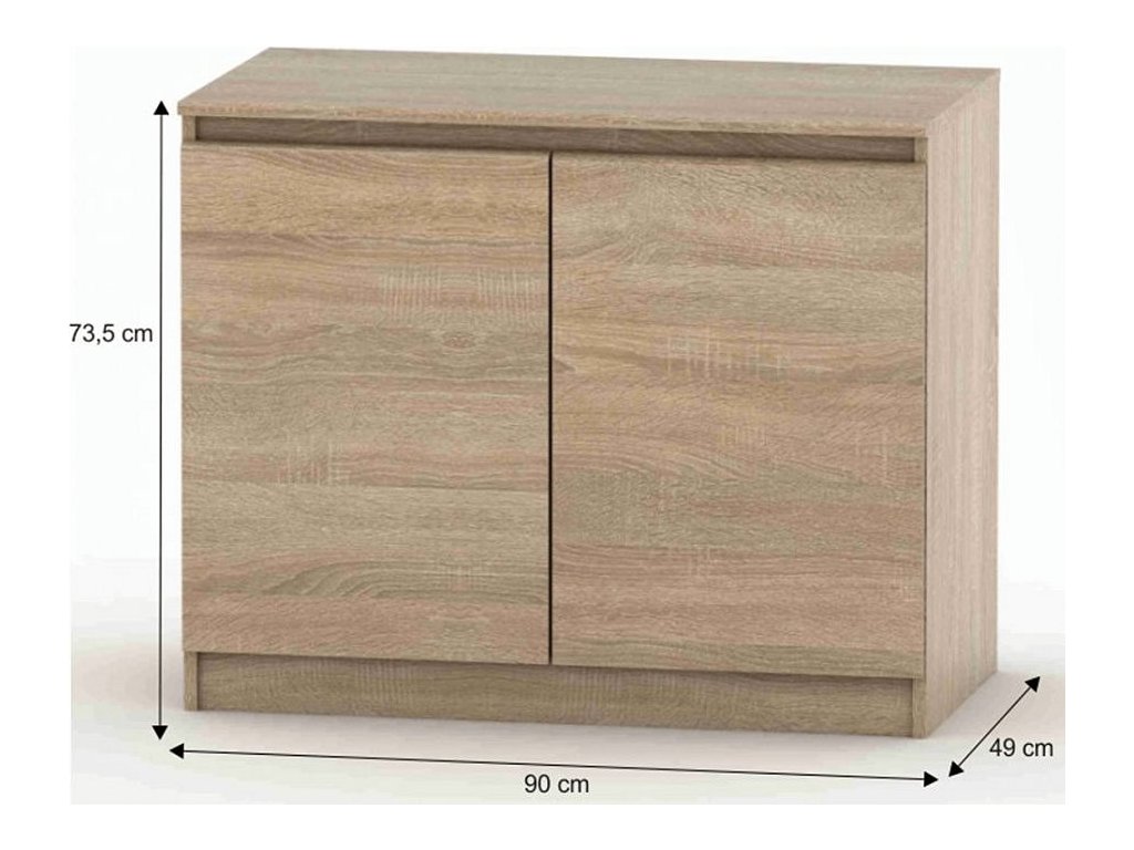 2 dveřová komoda HANY NEW 008 Materiál: DTD laminovaná Barva: dub sonoma Rozměry (ŠxHxV): 90x49x73,5 cm Tloušťka materiálu: 16 mm s ABS hranami Kvalitní slovenský výrobek. Dodávané v demontu.