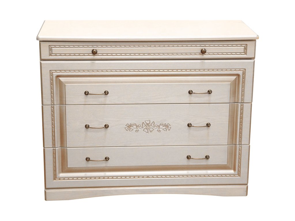 Komoda se šuplíky stylu, pro který je charakteristické ozdobné provedení, přírodní materiály a vyvážené dekorativní prvky. Nabízí bohatý úložný prostor v podobě 4 zásuvek.