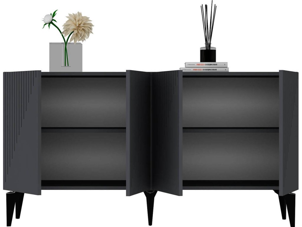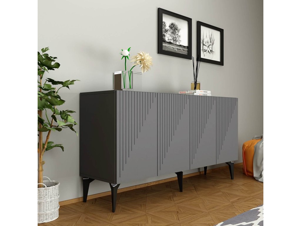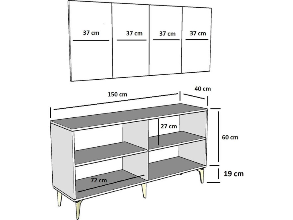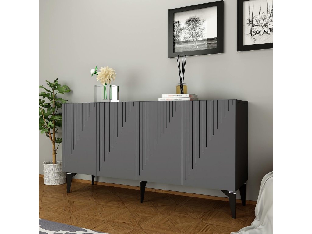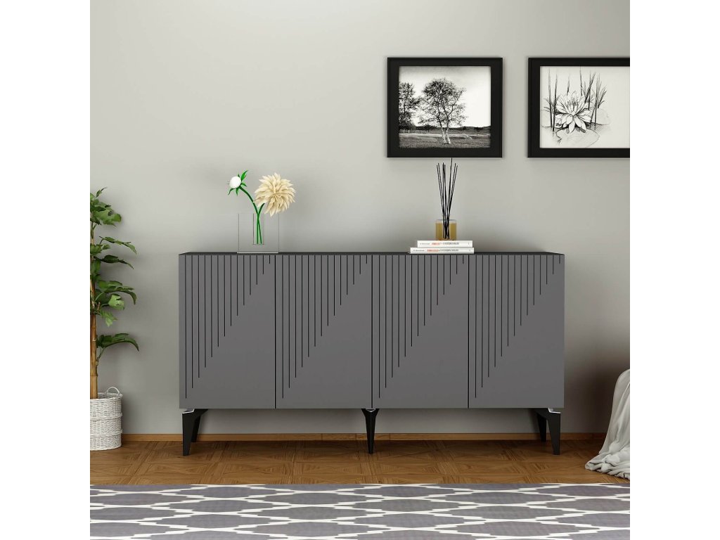 Komoda je dokonalým spojením elegance a funkčnosti, které přinese do vašeho obývacího pokoje nádech luxusu. Její široký design s čtyřmi plnými dvířky nabízí dostatek úložného prostoru pro všechny vaše potřeby, ať už jde o knihy, dekorace nebo jiné předměty.