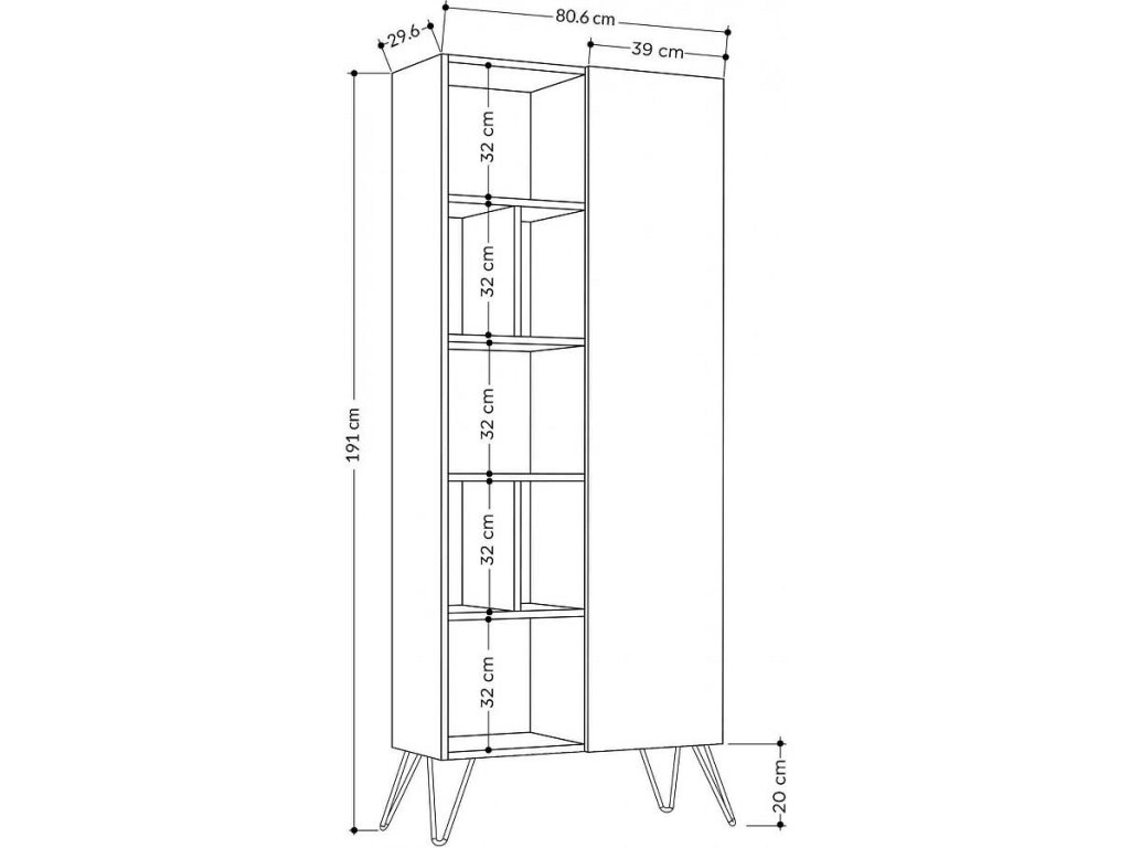 Rozměry: 191 x 80.6 x 29.6 cm - skvělý výběr pro místnosti všech velikostí.