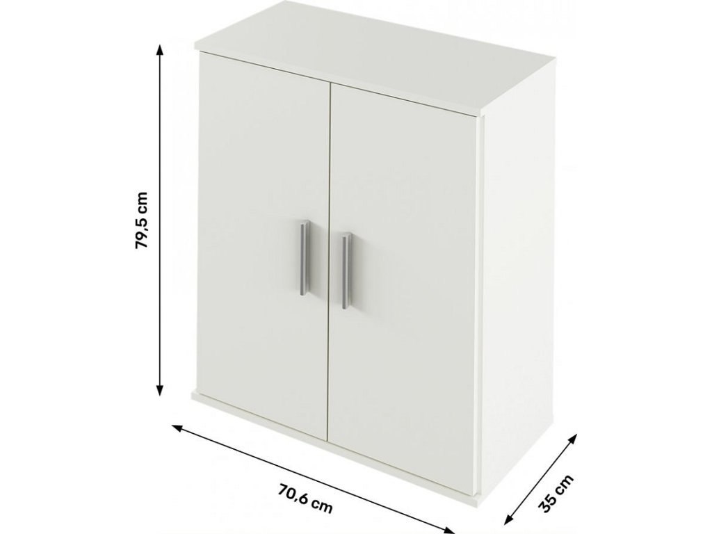 Materiál: DTD laminovaná Barva: bílá Rozměry (ŠxHxV): 70,6x35x79,5 cm dvoudveřová policová S úchytkami Dodávané v demontu
