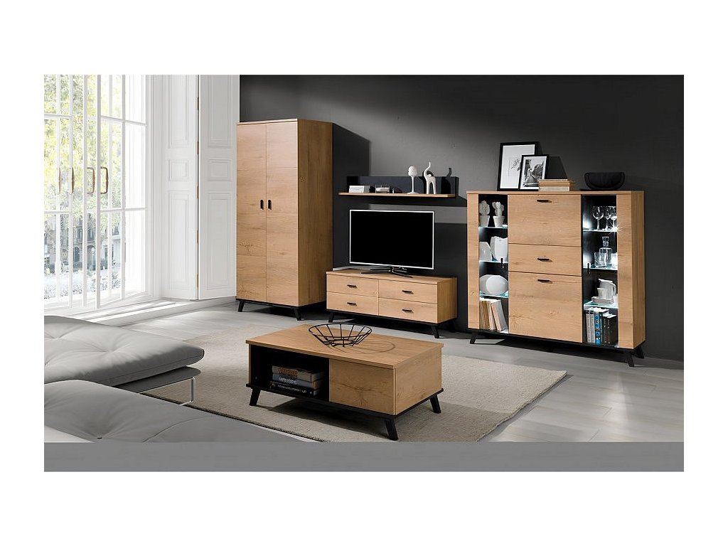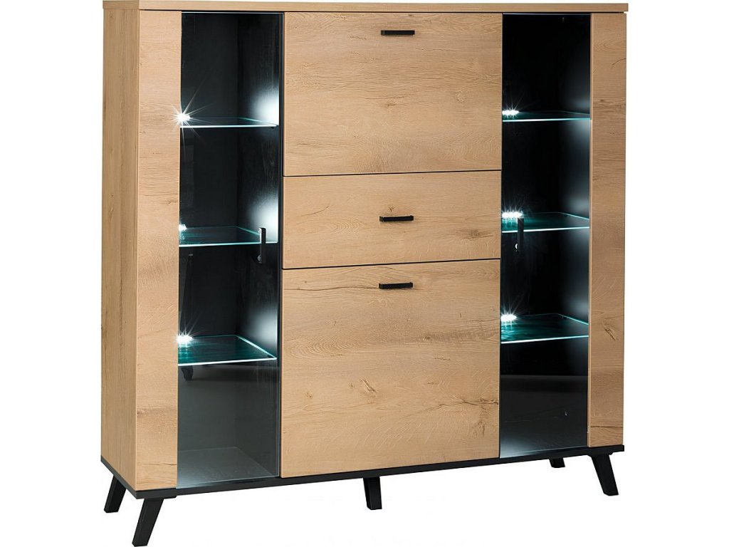 Materiál: DTD laminovaná / plast Barva: dub lefkas / černá Rozměry (ŠxHxV): 131x40x131 cm Výška spodního prostoru od podlahy: 12 cm Množství úložného prostoru Dvě skleněné vitríny ABS hrany plastové nožičky moderní styl Dodávané bez LED osvětlení Možnost dokoupit LED osvětlení Dodávané v demontu