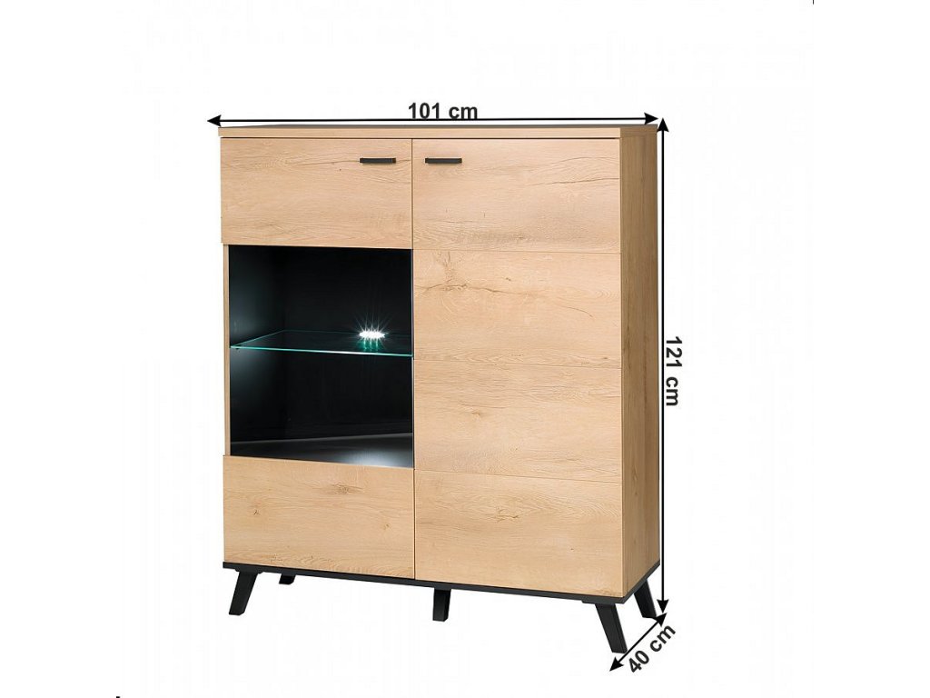 Materiál: DTD laminovaná / plast Barva: dub lefkas / černá Rozměry (ŠxHxV): 101x40x121 cm Výška spodního prostoru od podlahy: 12 cm dvoudveřová komoda ABS hrany plastové nožičky moderní styl Dodávané bez LED osvětlení Možnost dokoupit LED osvětlení Dodávané v demontu