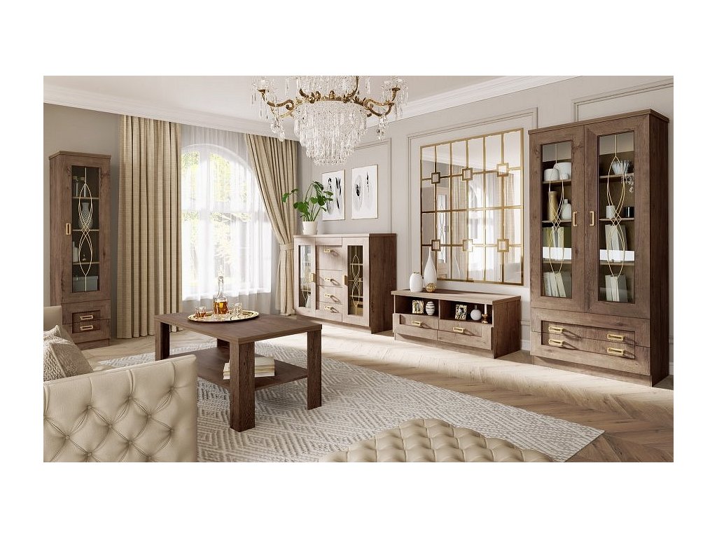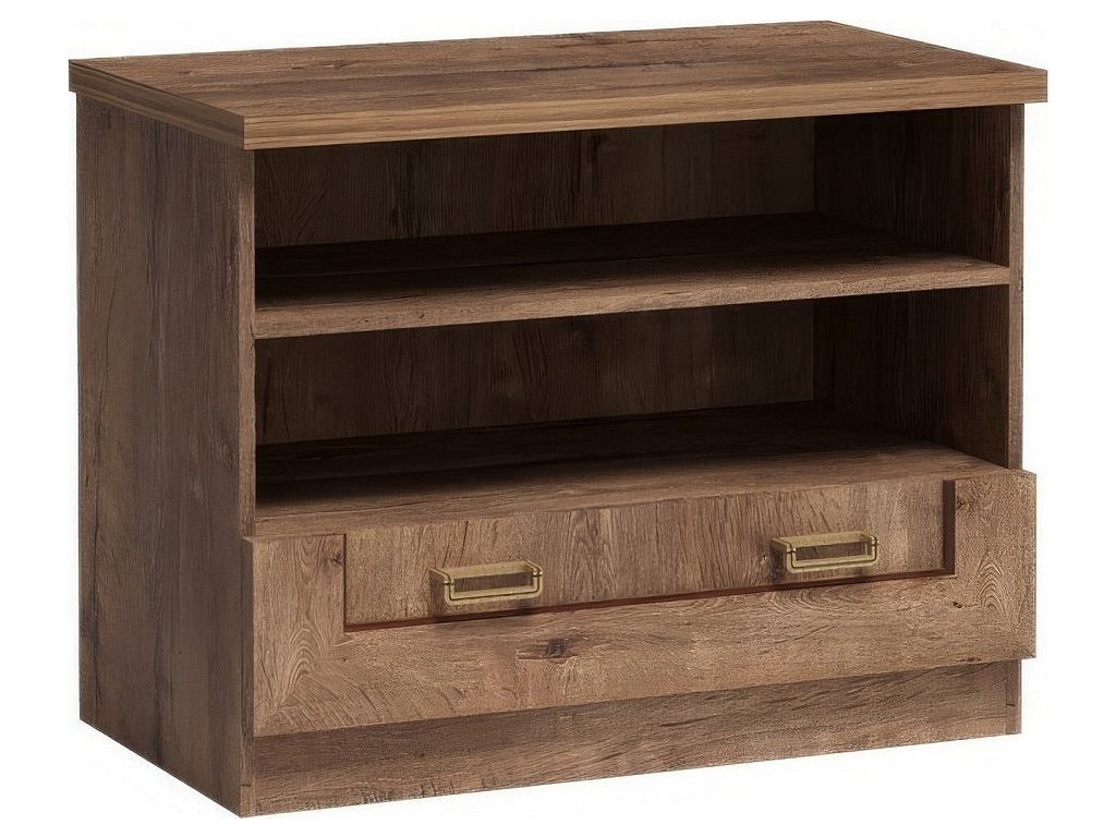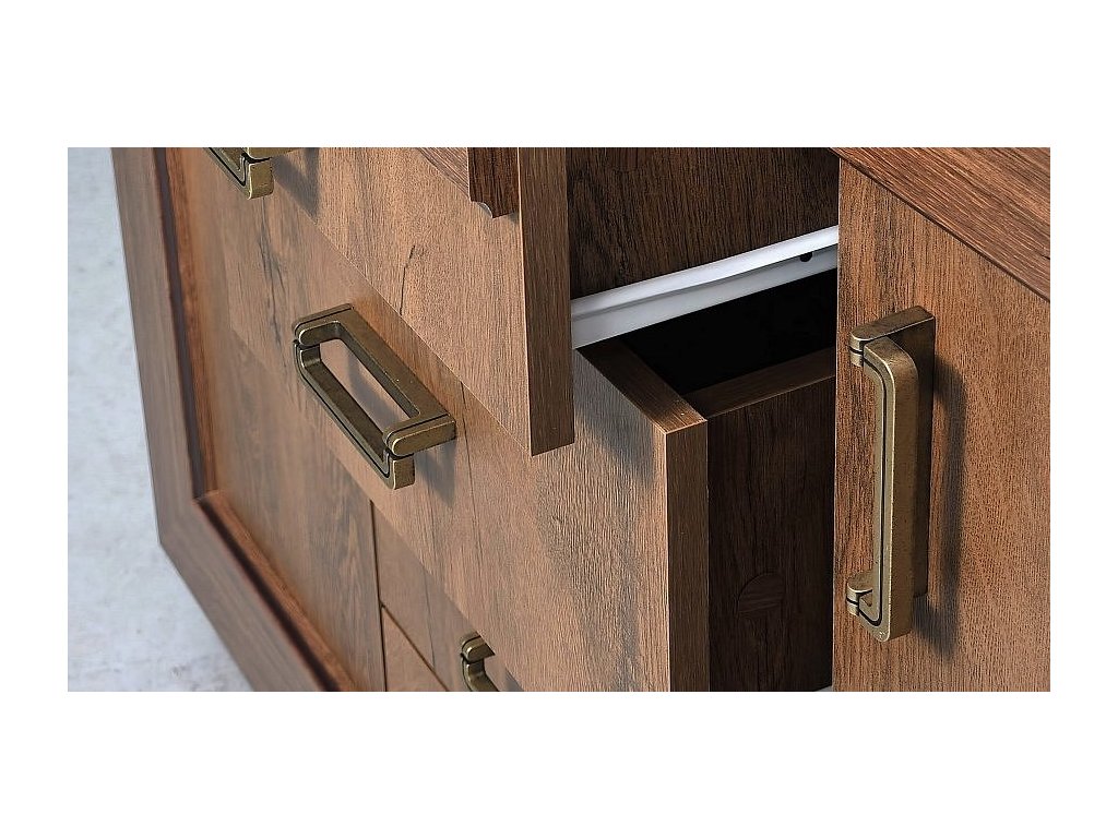 Komoda 1s ze sektorové řady TADEÁŠ. Komoda má 1 praktickou zásuvku. Systém TADEÁŠ je exkluzivní kolekce navržena v duchu vintage. Celá řada se vyznačuje elegancí a jednoduchými tvary, které zaručují plné využití prostoru. Nábytek je vyroben z velmi kvalitní LTD o tloušťce 16 mm, horní deska zesílena na 32 mm, lišty na čele nábytku jsou MDF, hrany ABS. Tvrzené sklo ve vitrínách je jemně zdobené. Elegantní úchyty jsou z kovu. Barevné provedení dub lefkas. Dodáváme v demontovaném stavu.Doplňkové parametry