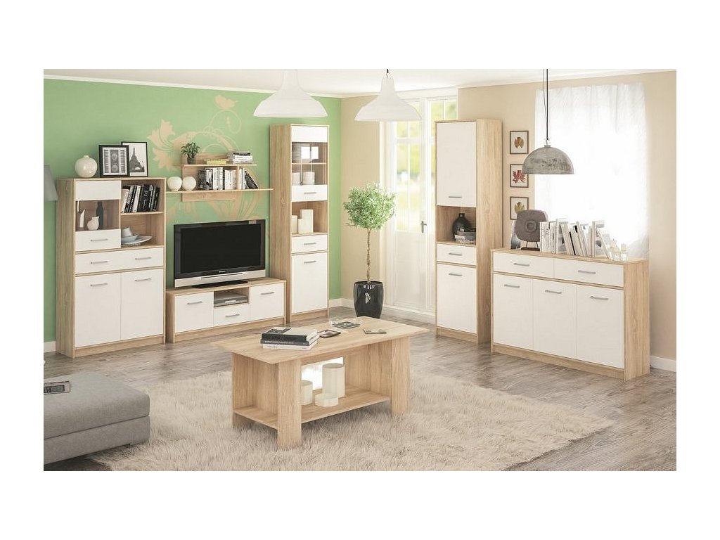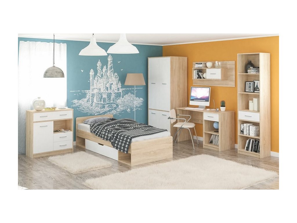 Komoda ze sektorového nábytku v moderním provedení vyrobena z kvalitní LTD desky v barevné kombinaci dub sonoma / bílá mat. Komoda má troje dvířka a dvě praktické zásuvky. Nabídka komponentů této sektorové řady umožňuje sestavit si nábytek do obývacího, dětského nebo studentského pokoje dle vlastních představ. Dodáváme v demontovaném stavu.Doplňkové parametry