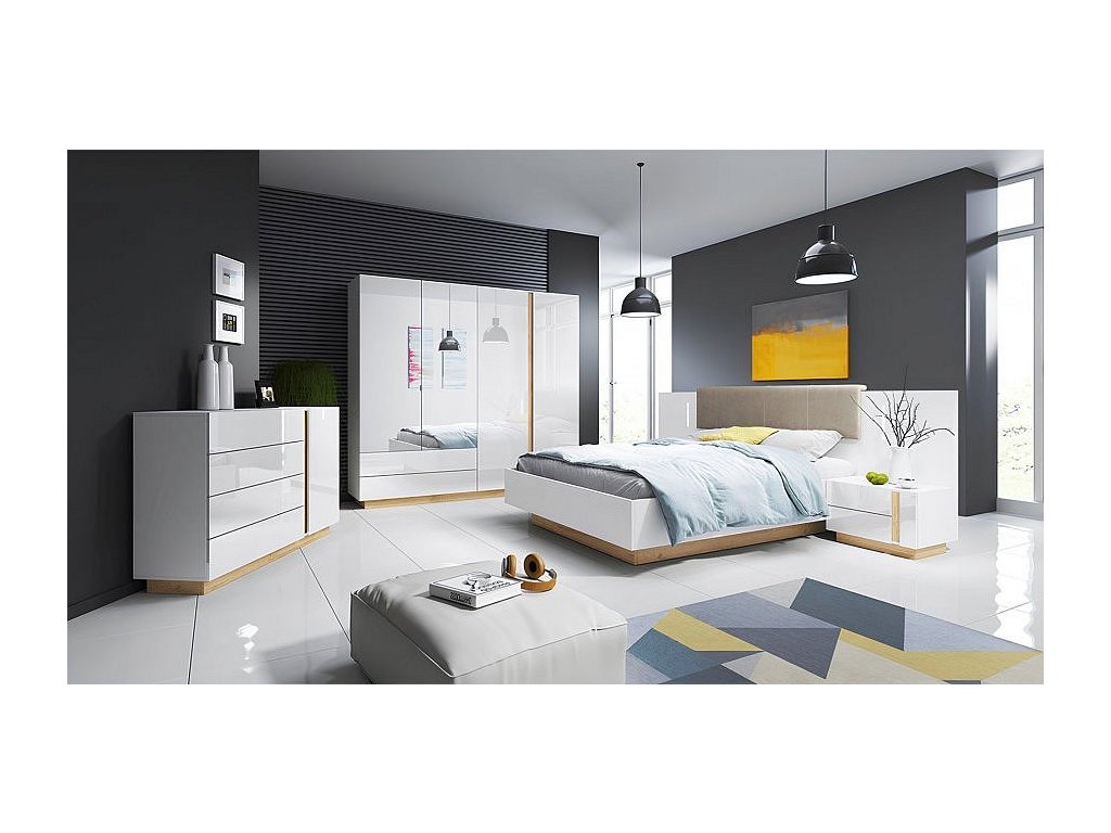 Komoda D4S, bílá/dub grandson/bílý lesk, CITY
