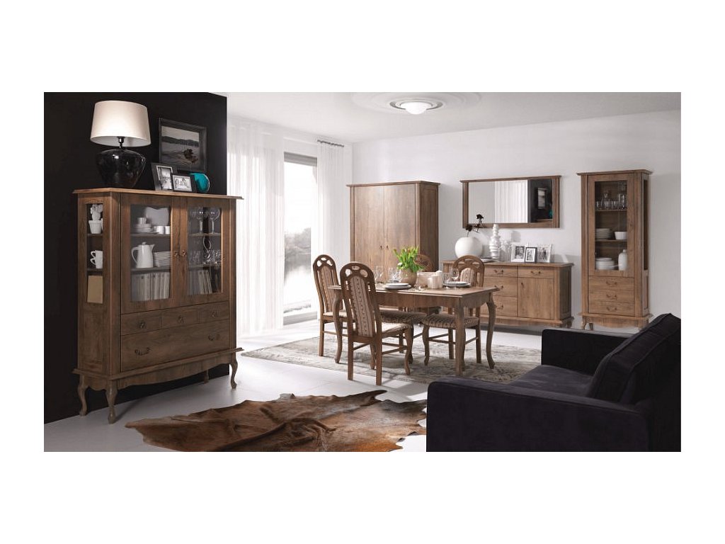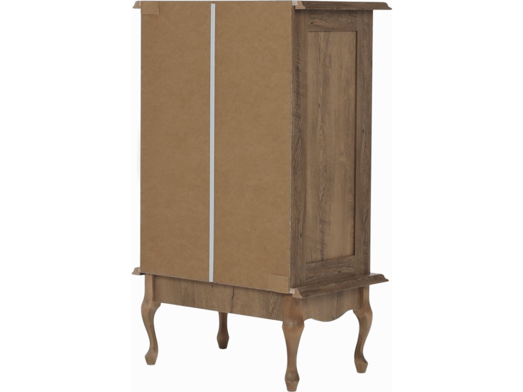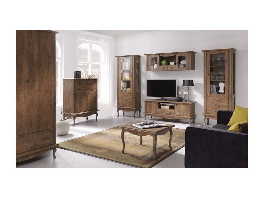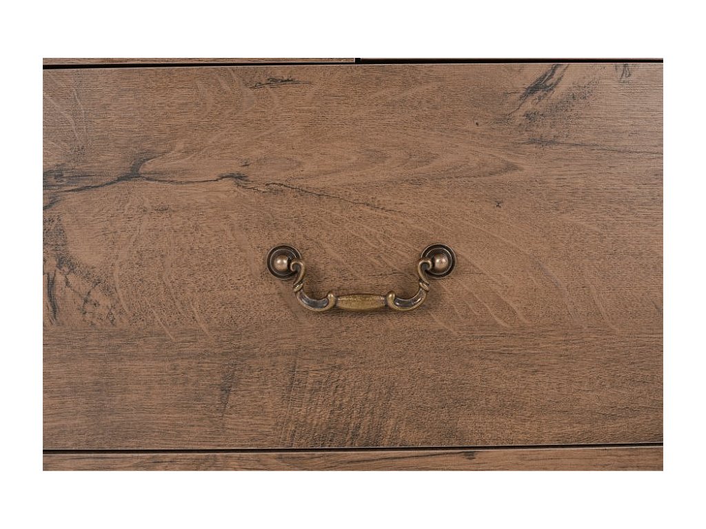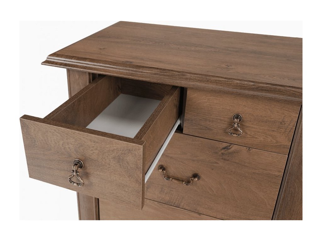 Materiál: DTD laminovaná / ABS hrany Barva: dub lefkas Rozměry (ŠxHxV): 75x47x125 cm Výška spodního prostoru od podlahy: 25 cm Tloušťka materiálu: 30 mm Pět šuplíků 3D efekt kovové úchytky Dřevěné nožičky ABS hrany barokní styl