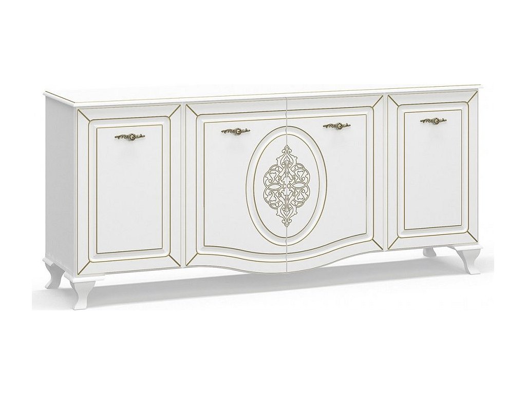 Komoda čtyřdveřová z ložnicové řady. Detailně a esteticky zpracováno v bílé moderní barvě. Oblé tvary a detaily zpracování dodávají jedinečnost a originalitu v naší nabídce. Přední část této rustikální komody je vyrobena z kvalitní MDF desky. Korpus je vyroben z LTD desky. Nabídka komponentů této sektorové řady umožňuje sestavit si nábytek do ložnice dle vlastních představ. Dodáváme v demontovaném stavu.Doplňkové parametry
