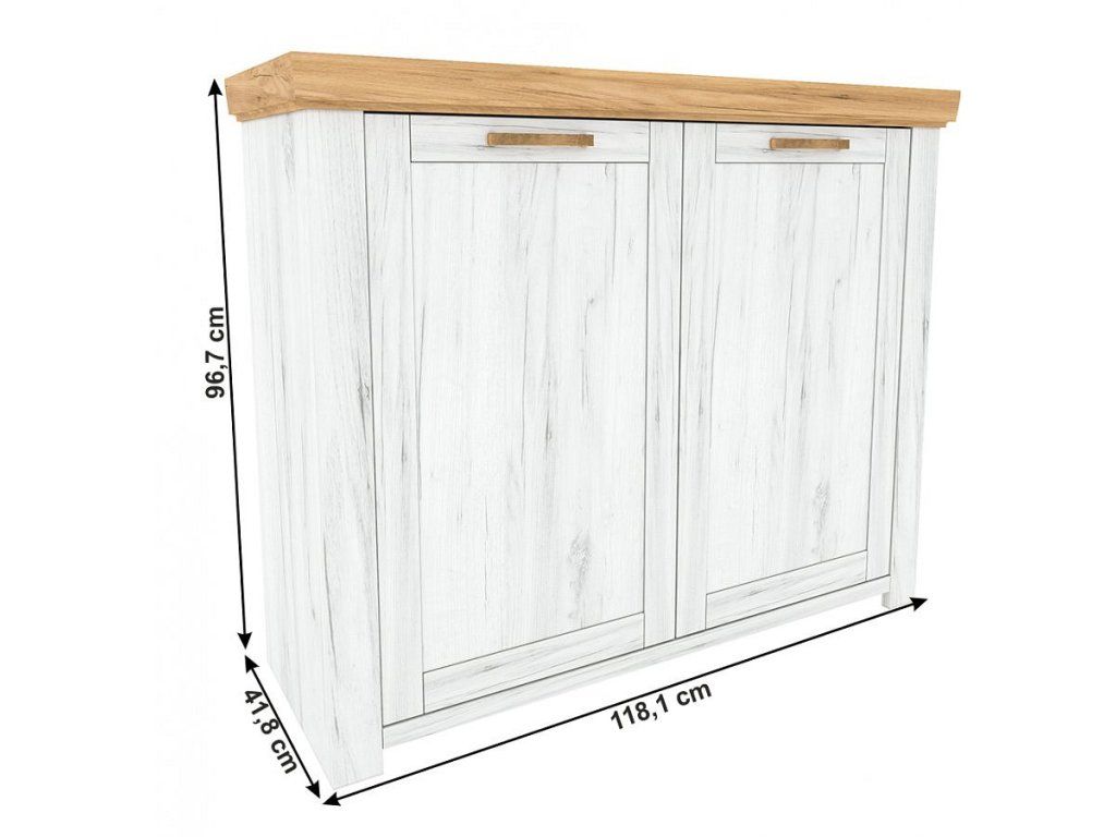 Materiál: DTD laminovaná / MDF laminovaná Barva: dub craft zlatý / dub craft bílý Rozměry (ŠxHxV): 118,1x41,8x96,7 cm Tloušťka materiálu korpus: 16 mm Tloušťka materiálu vrchní deska: 22 mm Tloušťka materiálu dvířka: 19 mm Výška spodního prostoru od podlahy je 4,2 cm dvě skříňky Dodávané v demontu