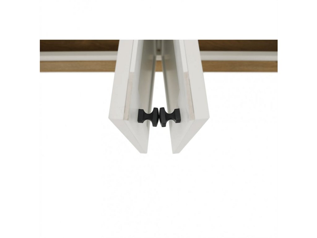 barevné provedení bílá prostor dělený v poměru 2:1 širší část šatní tyč, užší část 2 variabilní police, 2 zásuvky ke skříni je možno dokoupit nástavec IN405068