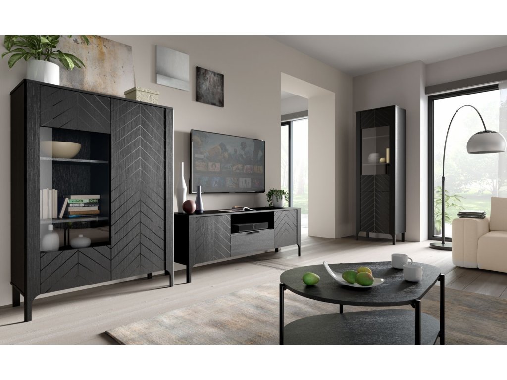 Zaujme výrazným vzorem rybí kosti na čelních plochách, vytvořeným pomocí UV technologie. Ten dodává celému kusu charakter a styl, aniž by rušil celkovou čistotu tvaru. Kovové minimalistické úchyty podtrhují její moderní vzhled.