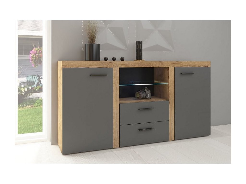 Komoda PUERTO 2D2S dub lefkas/grafit