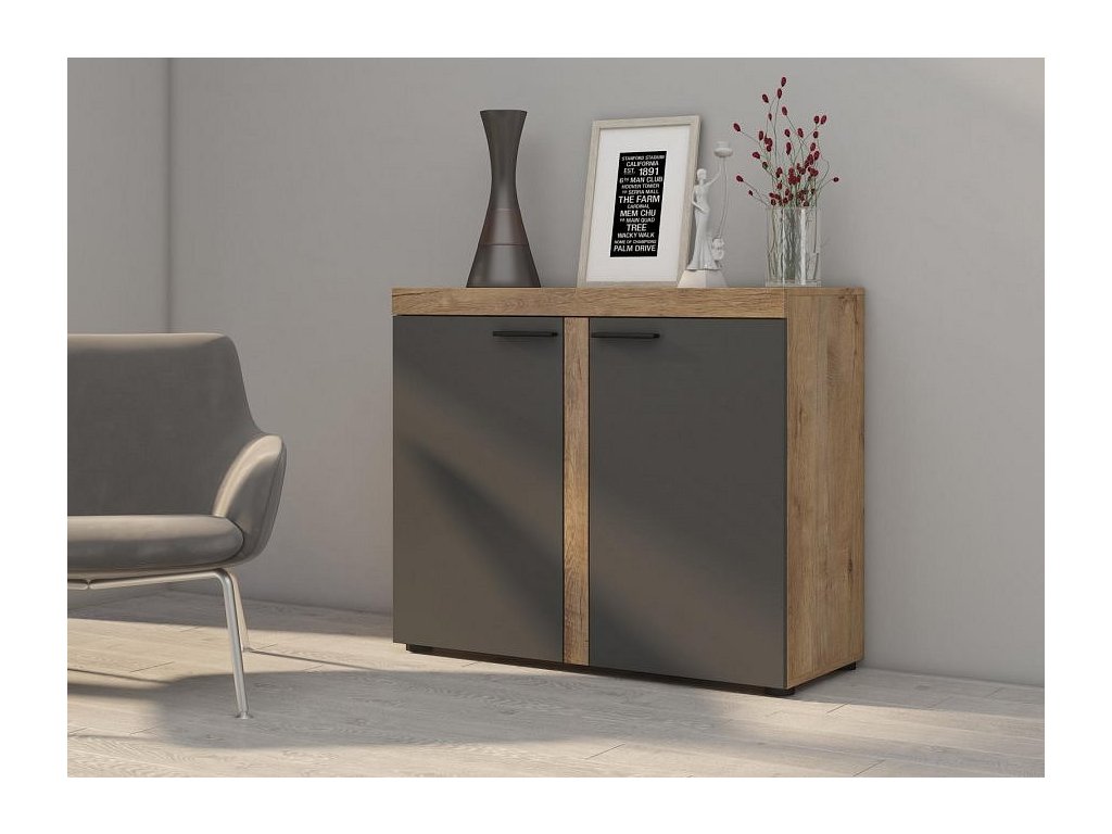 Komoda Rizo je nejen skvělým doplňkem k bytové stěně Rizo. Stejně výborně poslouží jako samostatný kus nábytku. Komoda má univerzální využití a nabízí dostatek úložného prostoru. Komoda je vyrobena z odolného a stálobarevného lamina. Komoda je dodávaná v demontu. Součástí balení je schematický montážní návod, včetně všech potřebných spojovacích prvků. Vyobrazené doplňky a dekorace nejsou v ceně.