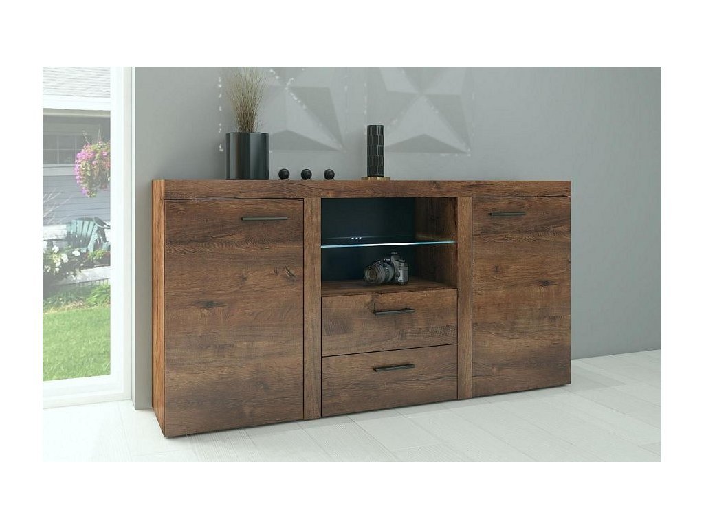 Komoda Rizo je nejen skvělým doplňkem k bytové stěně Rizo. Stejně výborně poslouží jako samostatný kus nábytku. Komoda má univerzální využití a nabízí dostatek úložného prostoru. Komoda je vyrobena z odolného a stálobarevného lamina. Komoda je dodávaná v demontu. Součástí balení je schematický montážní návod, včetně všech potřebných spojovacích prvků. Vyobrazené doplňky, LED osvětlení a dekorace nejsou v ceně.