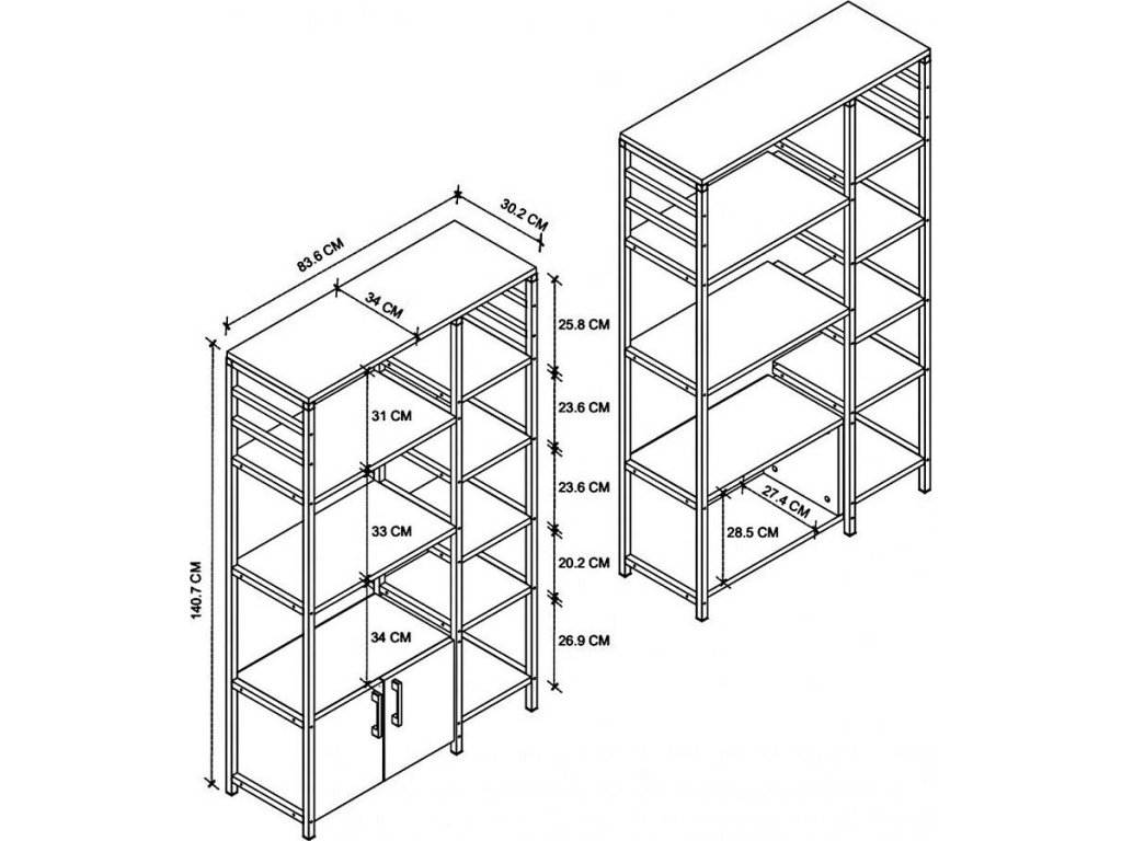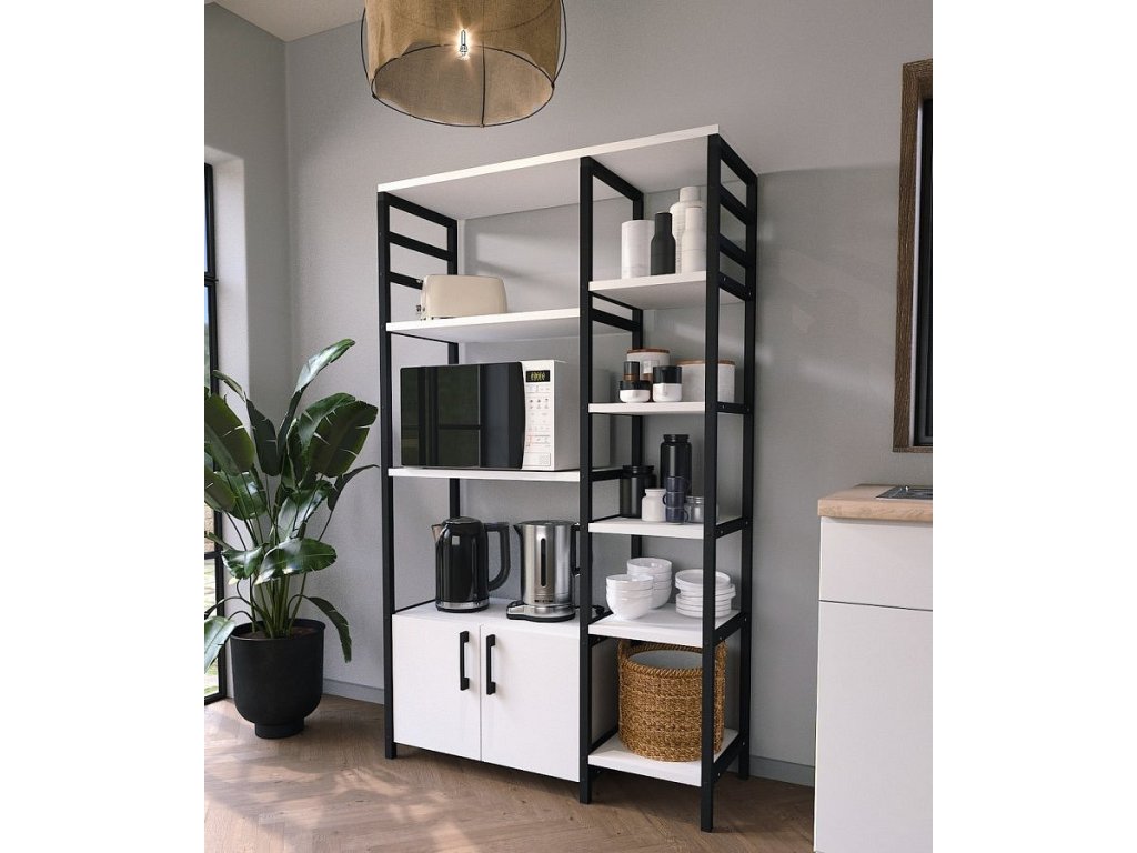 Praktický policový regál industriálního stylu je z kovového rámu v matné černé barvě, dvířka a osm polic je vyrobeno z kvalitní LTD desky. Barevné provedení dvířek a polic je matná bílá. Dodáváme v demontovaném stavu.Doplňkové parametry