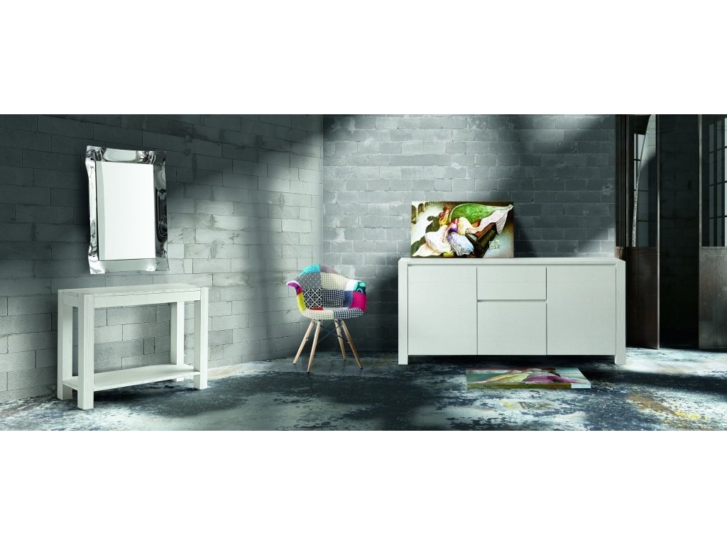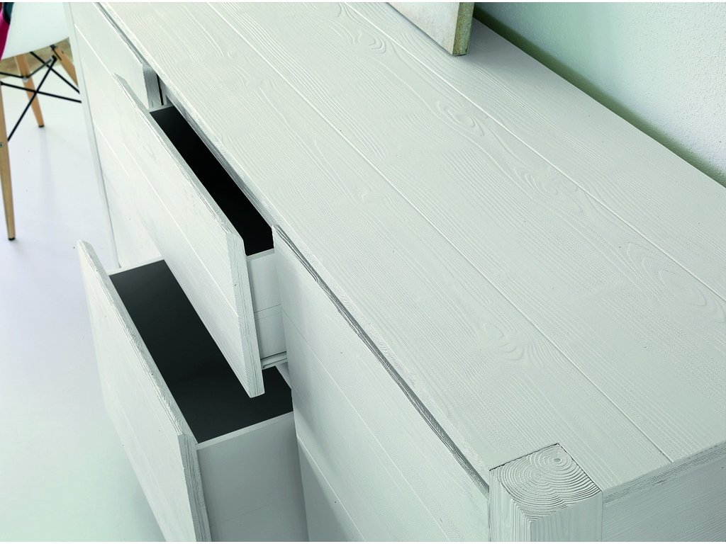 Masivní komoda SMRK, bílá rýhovaná. Hrubý a surový styl této komody je poslední "trendy" nábytku z masívu. Rozměr: 185x50x84 Barevné provedení: bílá jako foto. Dodáno v celku.