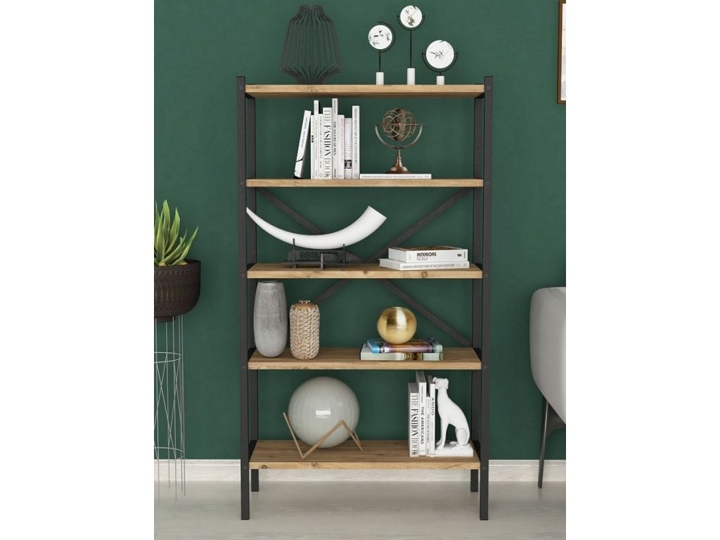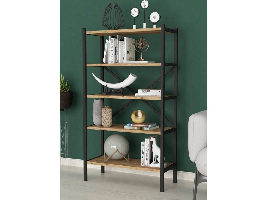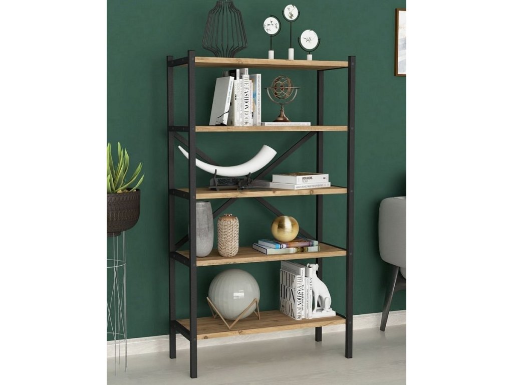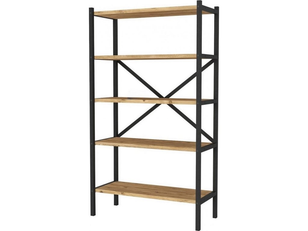 Regál s pěti policemi je z kovového rámu v matné černé barvě a police jsou vyrobeny z kvalitní LTD desky v barvě borovice. Dodáváme v demontovaném stavu.Doplňkové parametry
